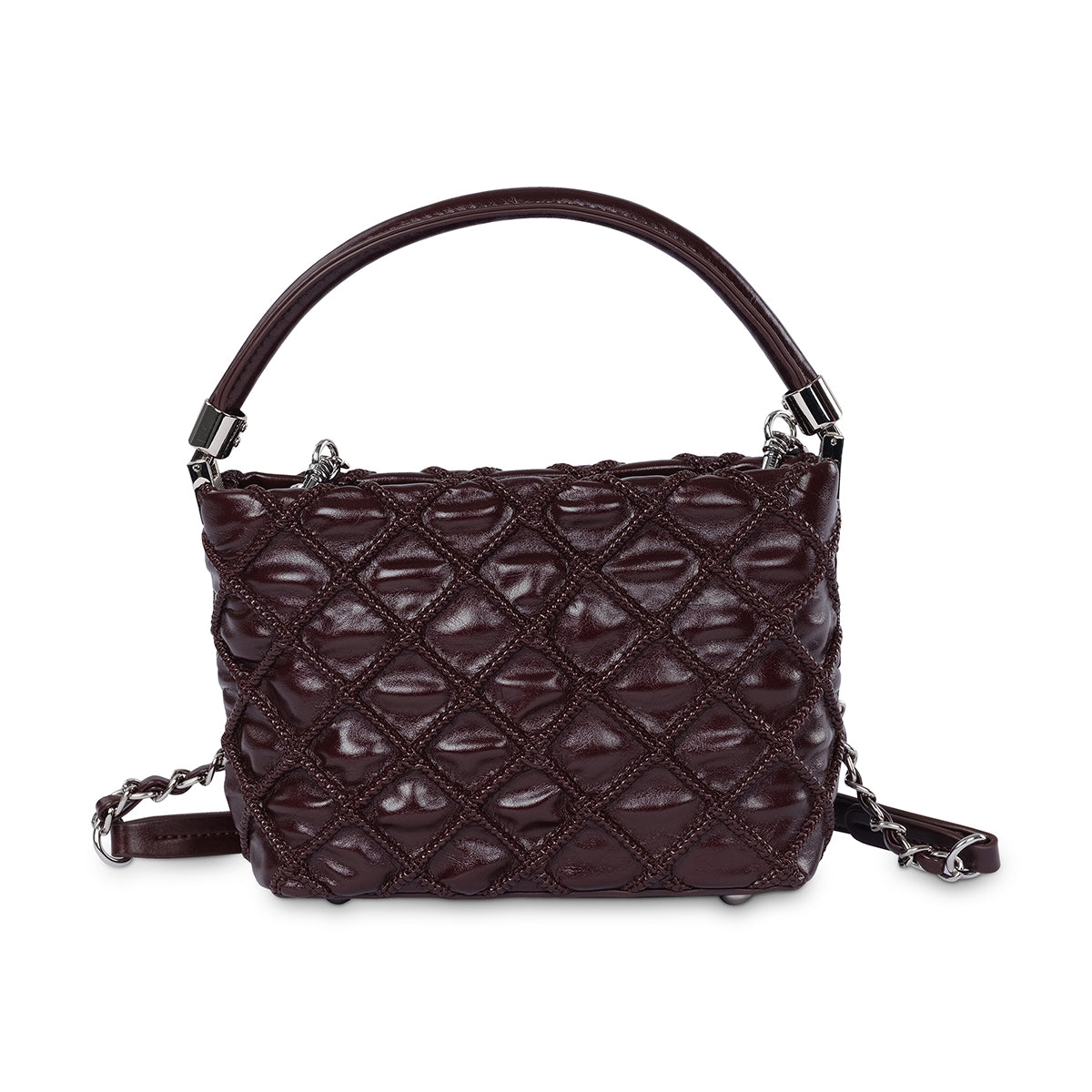Meet your new go-to accessory: the 'Himari Mini' structured handbag. Crafted from a luxurious, dark brown material, this bag features a beautifully quilted design and sleek silver-tone hardware. Its elegant top handle and detachable chain strap offer both classic charm and modern versatility, making it an essential piece for any occasion.