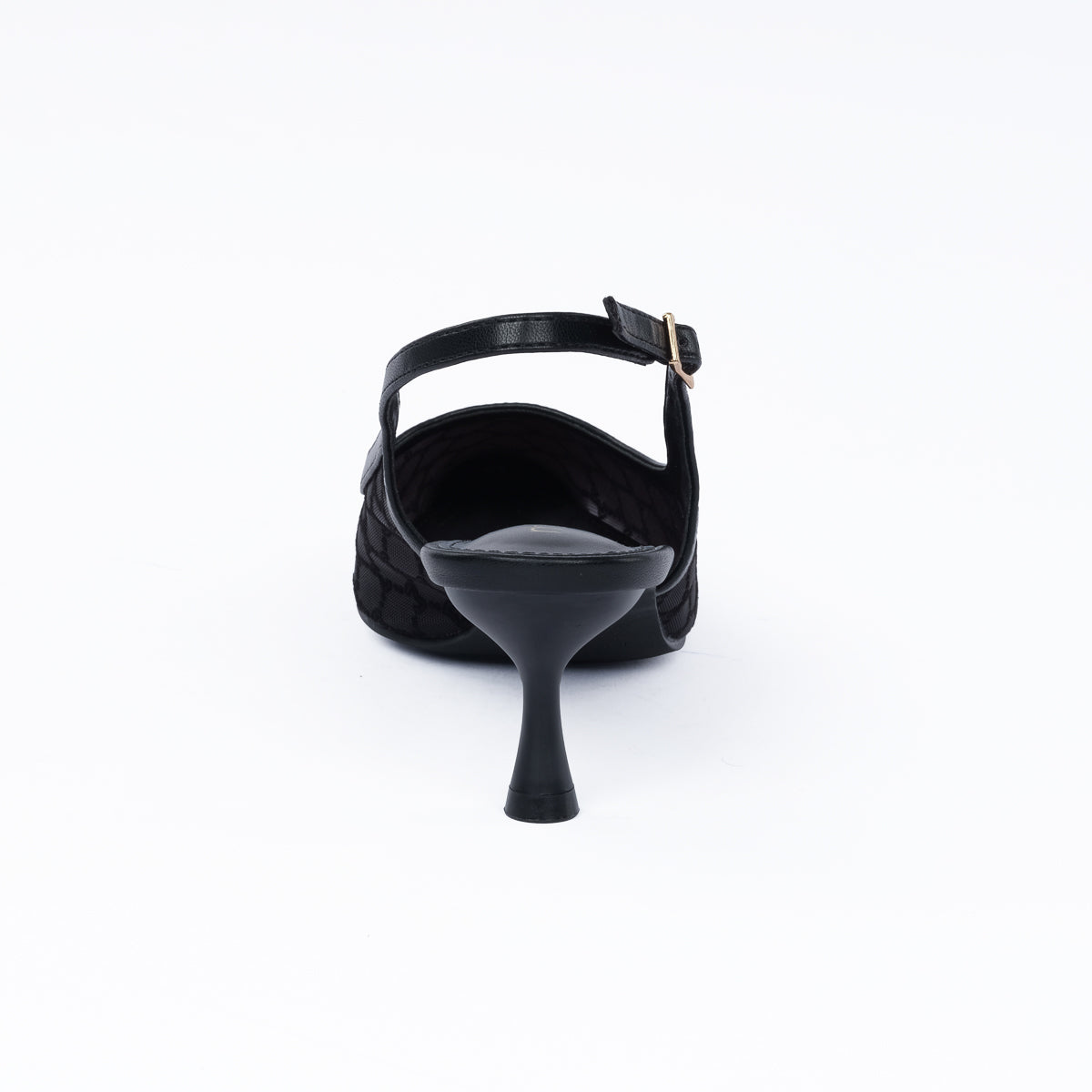 These Olivia slingback pumps feature the brand's signature "M" monogram on a delicate mesh upper. With a sophisticated pointed toe and a modern flared heel, they blend classic design with contemporary style. The adjustable ankle strap with a gold-toned buckle ensures a secure fit, making them a versatile choice for both day and evening wear.