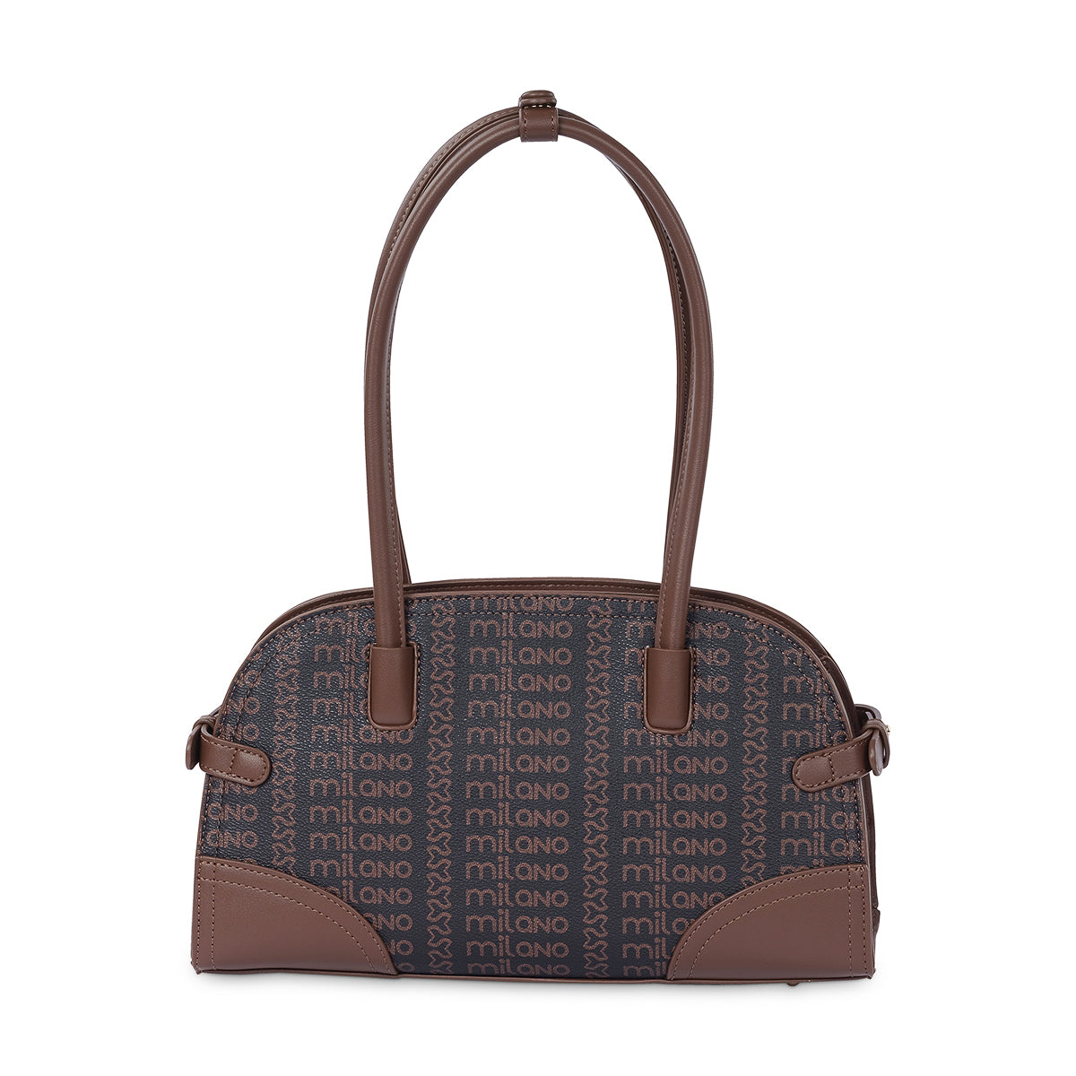 Add a touch of timeless sophistication to your look with the 'Milano' bowling bag. This bag features a rich, brown monogram pattern and elegant top handles. Its classic silhouette and spacious interior make it the perfect accessory for both daily use and weekend getaways.