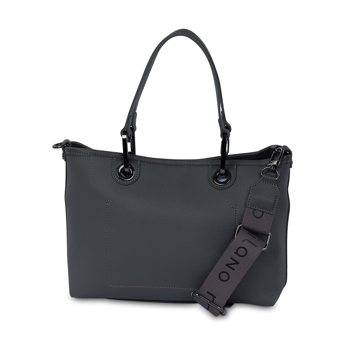 Elevate your look with the 'Milano' tote, a handbag that blends professional style with elegant details. This bag is crafted from a high-quality material with a subtle pebble grain texture and features polished silver-tone hardware and a distinctive brand tag. The spacious interior and multiple carrying options make it an ideal choice for both the office and weekend getaways.