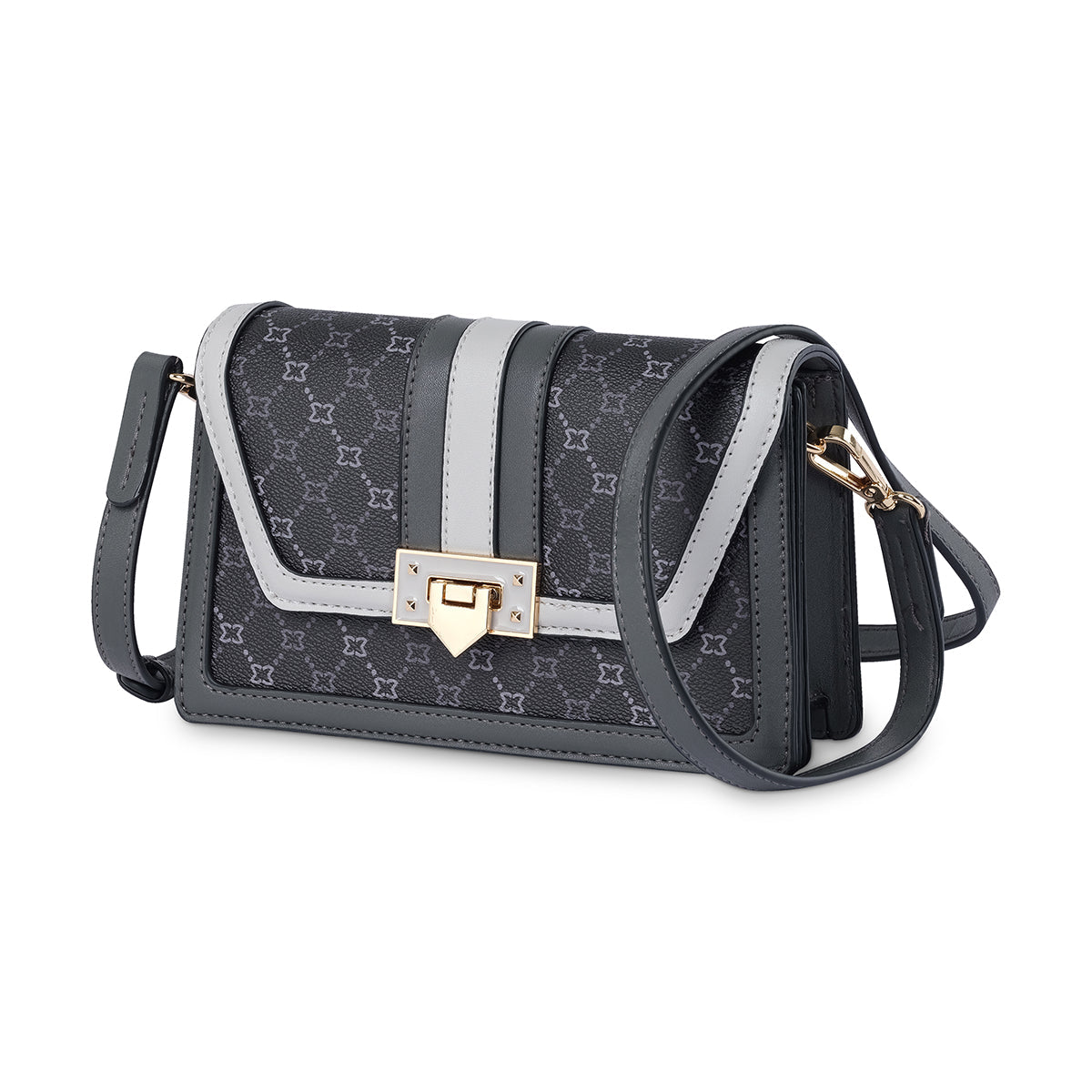 A perfect blend of sophistication and practicality, the 'Hinata' crossbody set is a modern must-have. This structured flap bag features a chic monogram pattern and a bold center stripe.