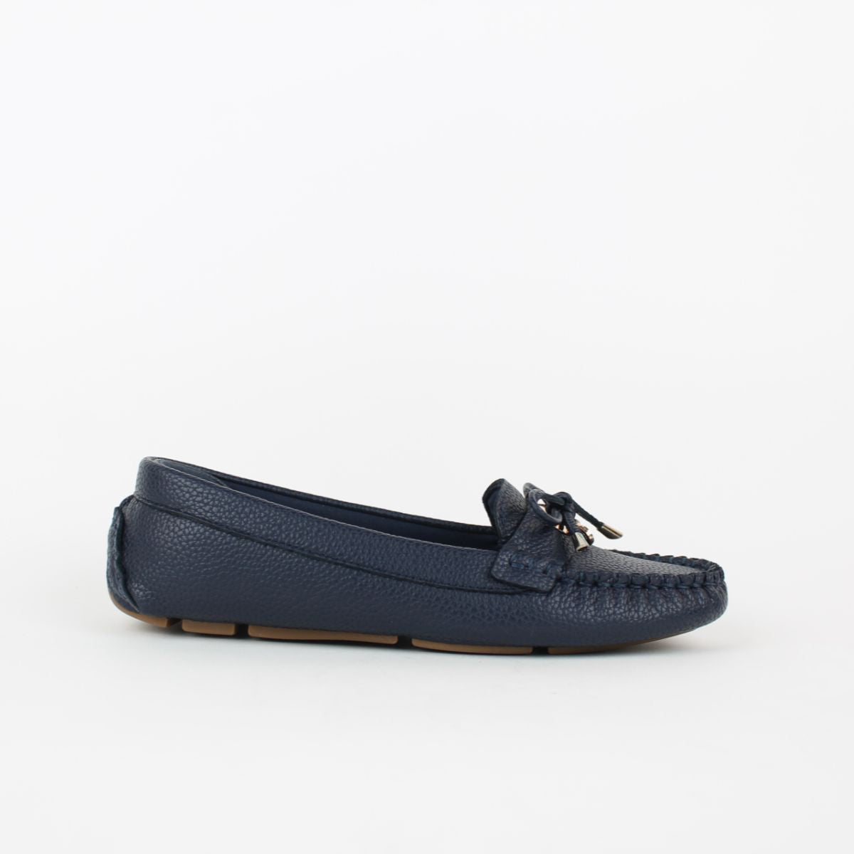 The classic moccasin design is updated with charming bow detailing and metallic hardware, creating a versatile shoe that's perfect for a variety of occasions. From weekend errands to casual office days, experience effortless style and all-day comfort.