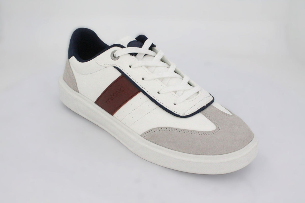 Clean lines that give an everyday ease vibe. This essential low-top sneaker is designed with simplicity in mindƒ??crafted from smooth materials with a streamlined silhouette that fits seamlessly into any wardrobe. Lightweight and versatile, itƒ??s the kind of shoe youƒ??ll reach for day after day. Whether you're dressing it up with tailored pieces or keeping it casual with denim, this sneaker delivers understated style with effortless comfort. It features a maroon colored panel on the side for an added feature to the simple silhouette with subtle stitch details. The lightweight outsole provides for an all day wear & the cushioned insole for soft step-in comfort.