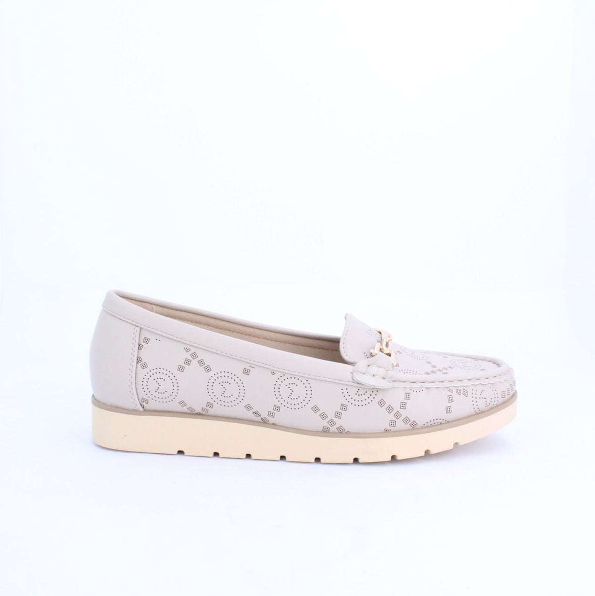 Keva loafer is a chic and stylish minimalist design with subtle yet distinctive details. The upper part of the loafer is adorned with fashionable perforated patterns. The shoe is set on a light-colored rubber sole with slight grooves, offering flexibility and grip, making it suitable for all-day wear.