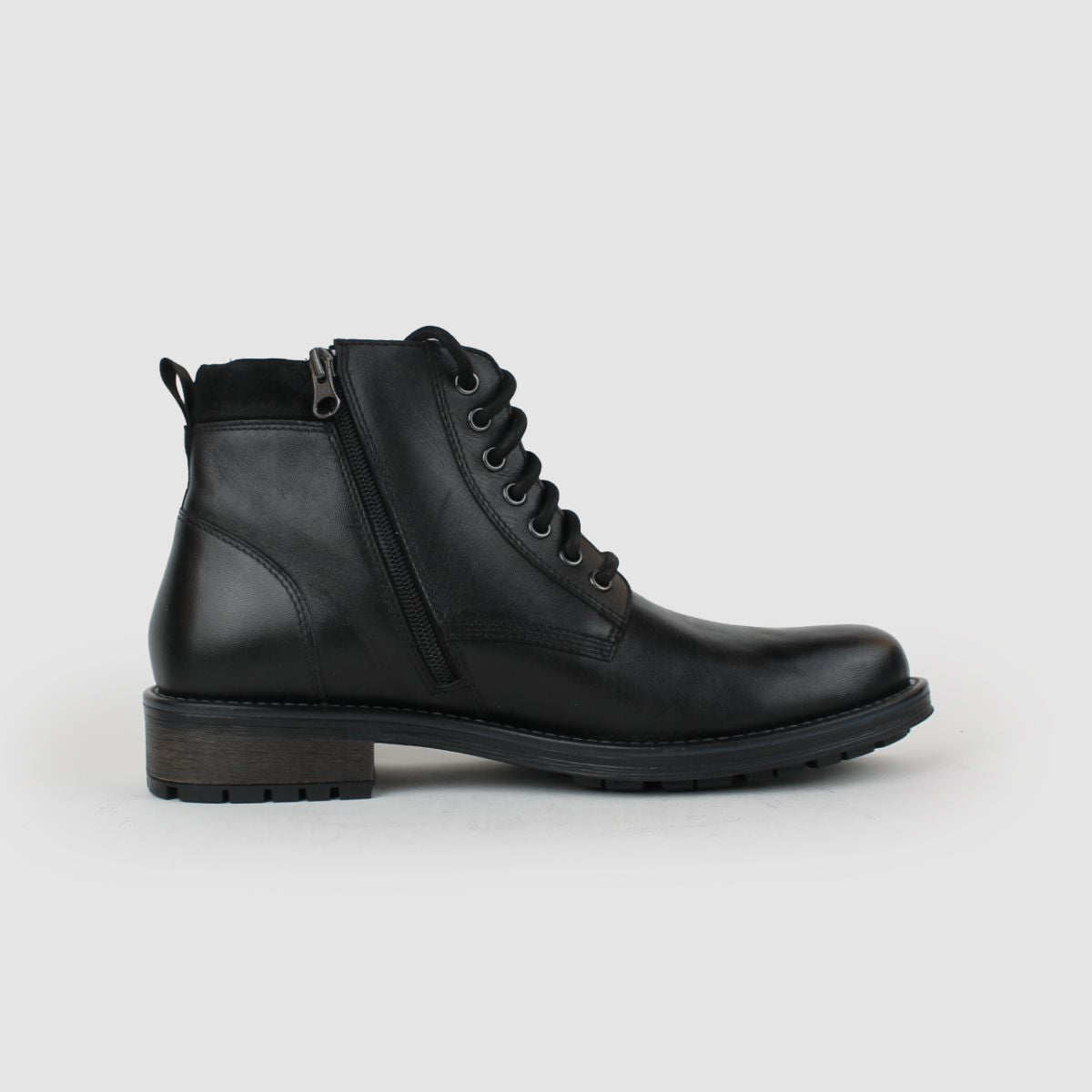 RUNDLE MENS LEATHER BIKER BOOTS-BLACK