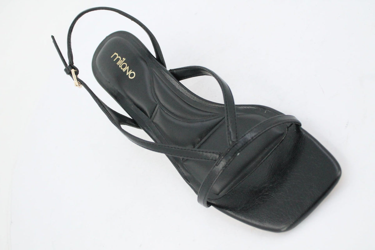 Step out in sleek sophistication with these ELOISA Square Toe Heeled Sandals. These sandals feature a modern square toe, gold tone sole, and delicate, minimalist straps that elegantly frame the foot. The subtle heel provides a comfortable lift, while the adjustable ankle strap ensures a secure fit. Perfect for adding a touch of understated elegance to any occasion, from daytime events to evening affairs.