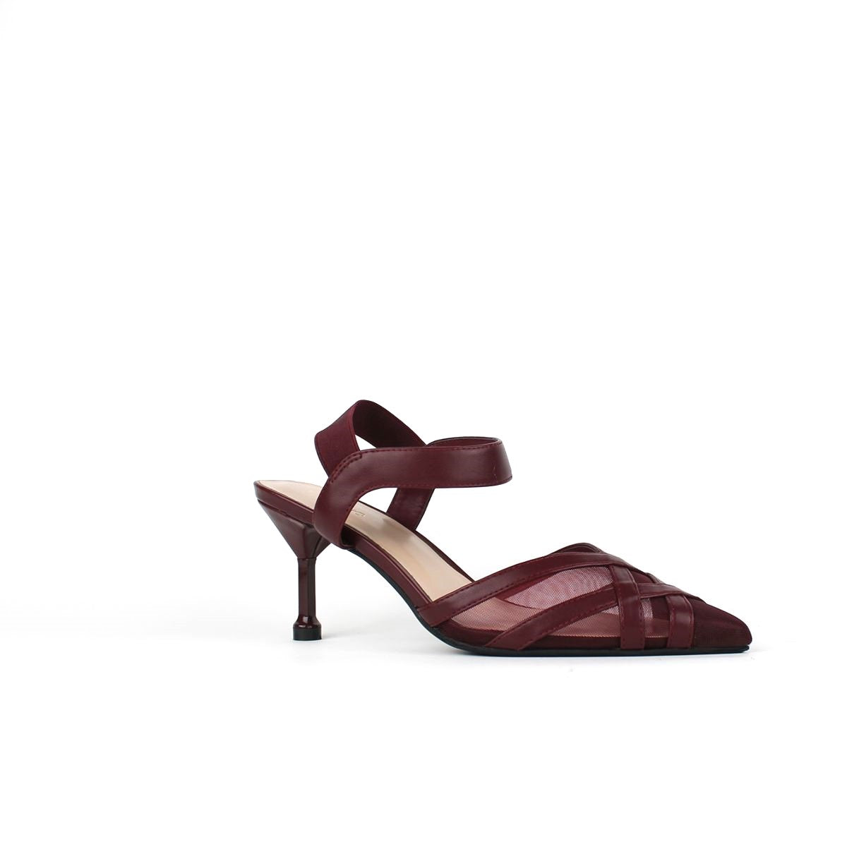 A stunning blend of modern elegance and bold design, this slingback heel is a true statement piece. These has a unique combination of solid and sheer mesh materials, creating a striking visual contrast. Featuring a pointed toe, a sleek and architectural heel, and a stylish elasticized slingback strap, this shoe offers both a sophisticated look and a comfortable, secure fit for any special occasion.