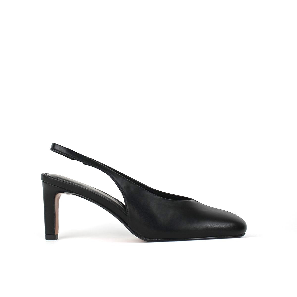 Elegant slingback pumps feature a square toe and a flared block heel for a modern take on a classic silhouette. The elasticated strap ensures a secure and comfortable fit, while the sleek design makes them versatile for both work and evening wear.