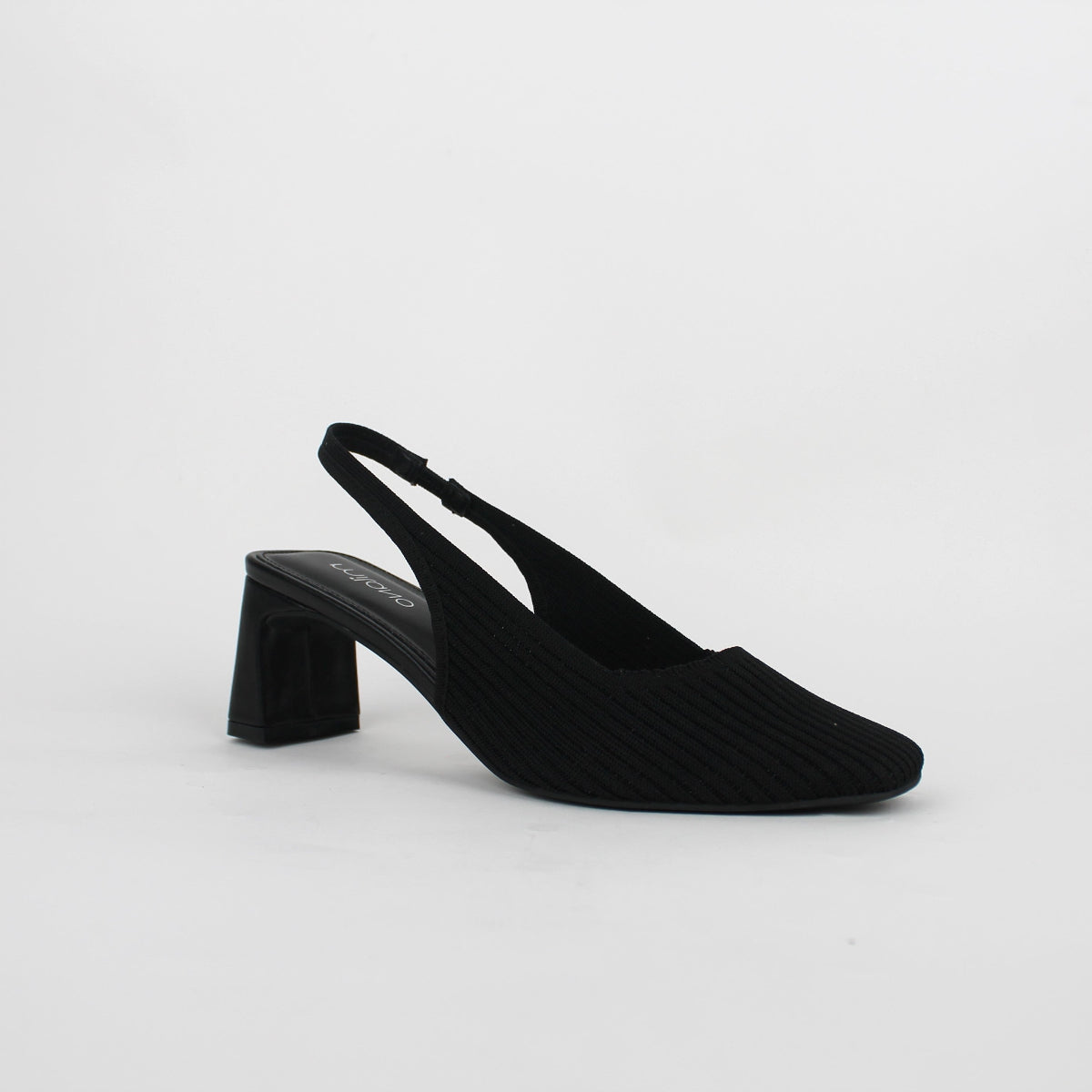 These modern slingback pumps, the unique upper features a delicate knitted or ribbed design, adding texture and visual interest to a classic shape. The chunky flared block heel provides a contemporary look and stable comfort. Ideal for elevating any outfit from the office to an evening out.