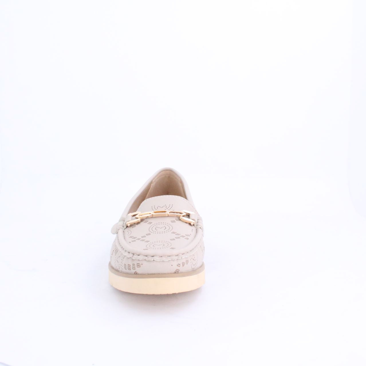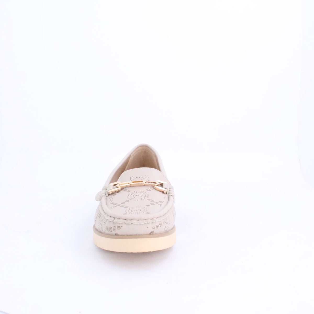 Keva loafer is a chic and stylish minimalist design with subtle yet distinctive details. The upper part of the loafer is adorned with fashionable perforated patterns. The shoe is set on a light-colored rubber sole with slight grooves, offering flexibility and grip, making it suitable for all-day wear.