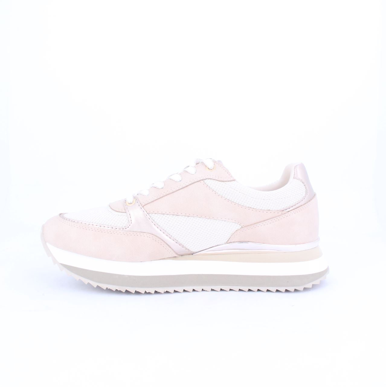 A blush pink lace-up sneakers with a mix of suede texture and mesh panels. It has a lightweight sole for flexibility, and a textured outsole for better grip. Perfect for casual wear and everyday activities.