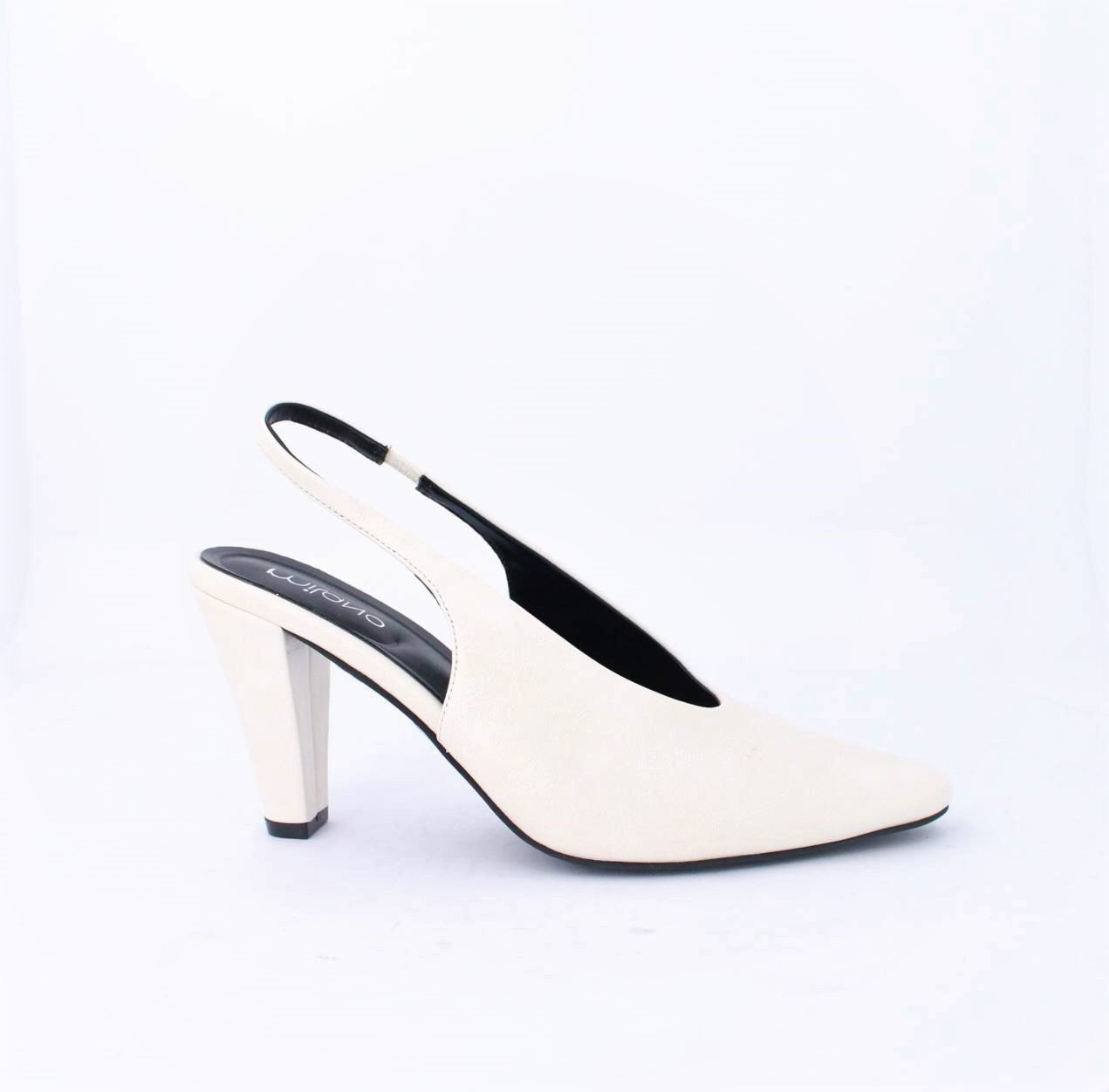 A slingback pump with a pointed toe and a sturdy block heel. Provides style and stability, making it suitable for formal and professional settings while ensuring comfort for extended wear.