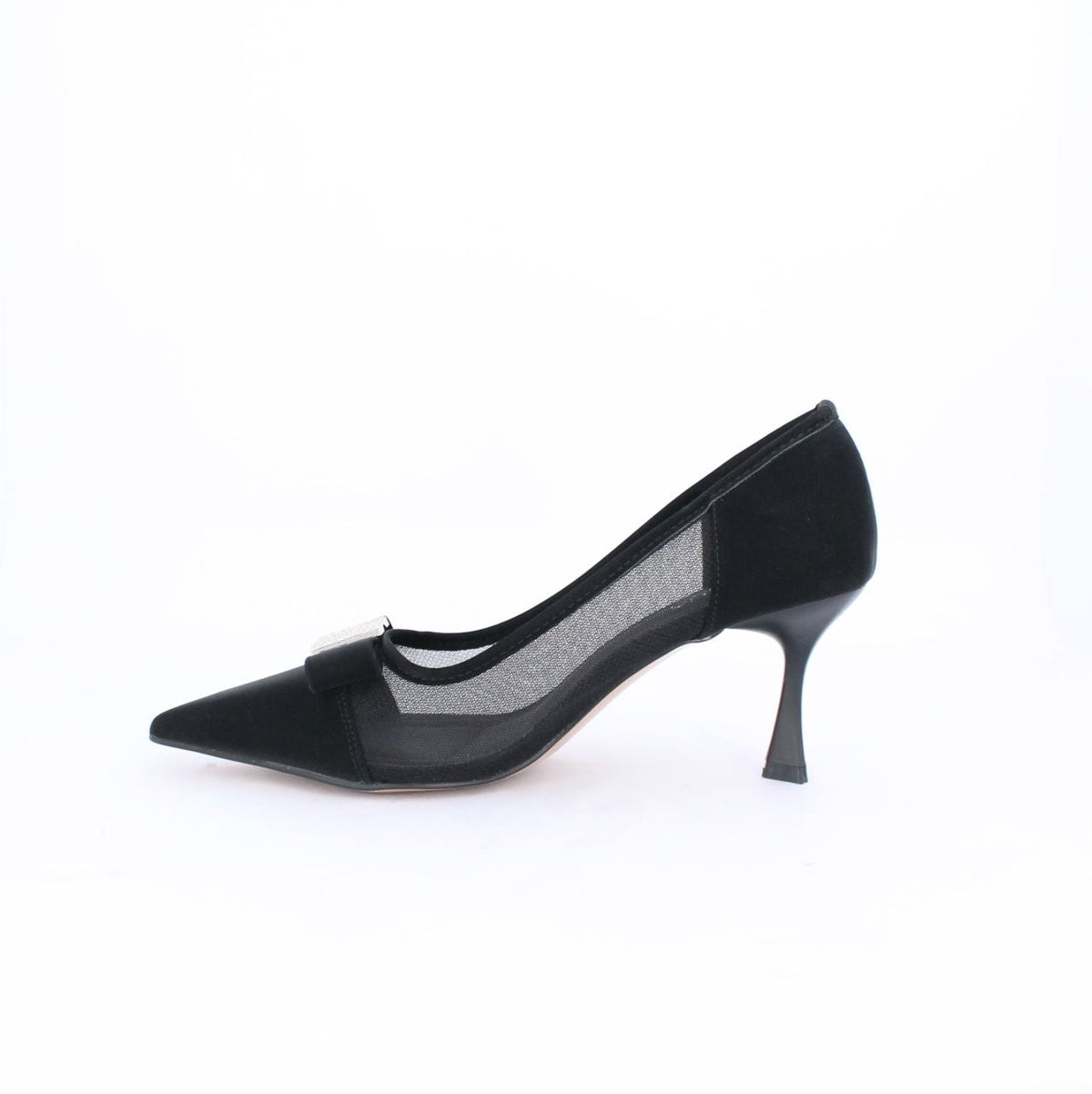 Elegant pointed-toe pumps in a mid-height kitten heel and a decorative buckle embellishment on the vamp for a sophisticated touch. These beauties will be a worthy wardrobe for your evening and wedding events.