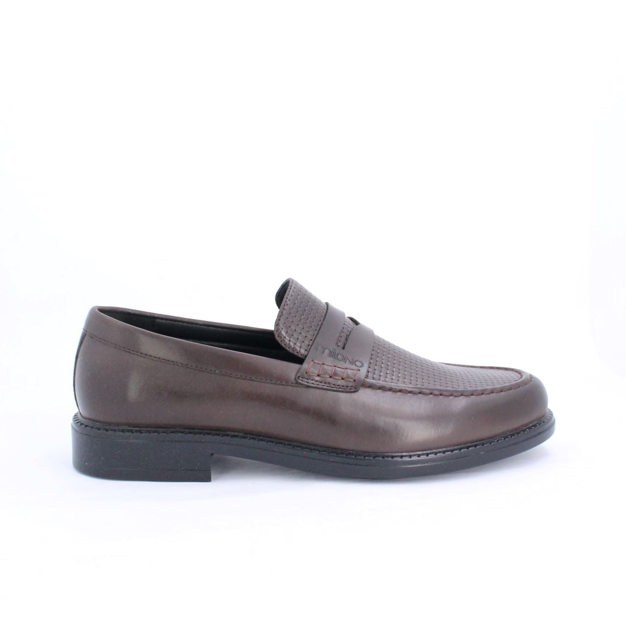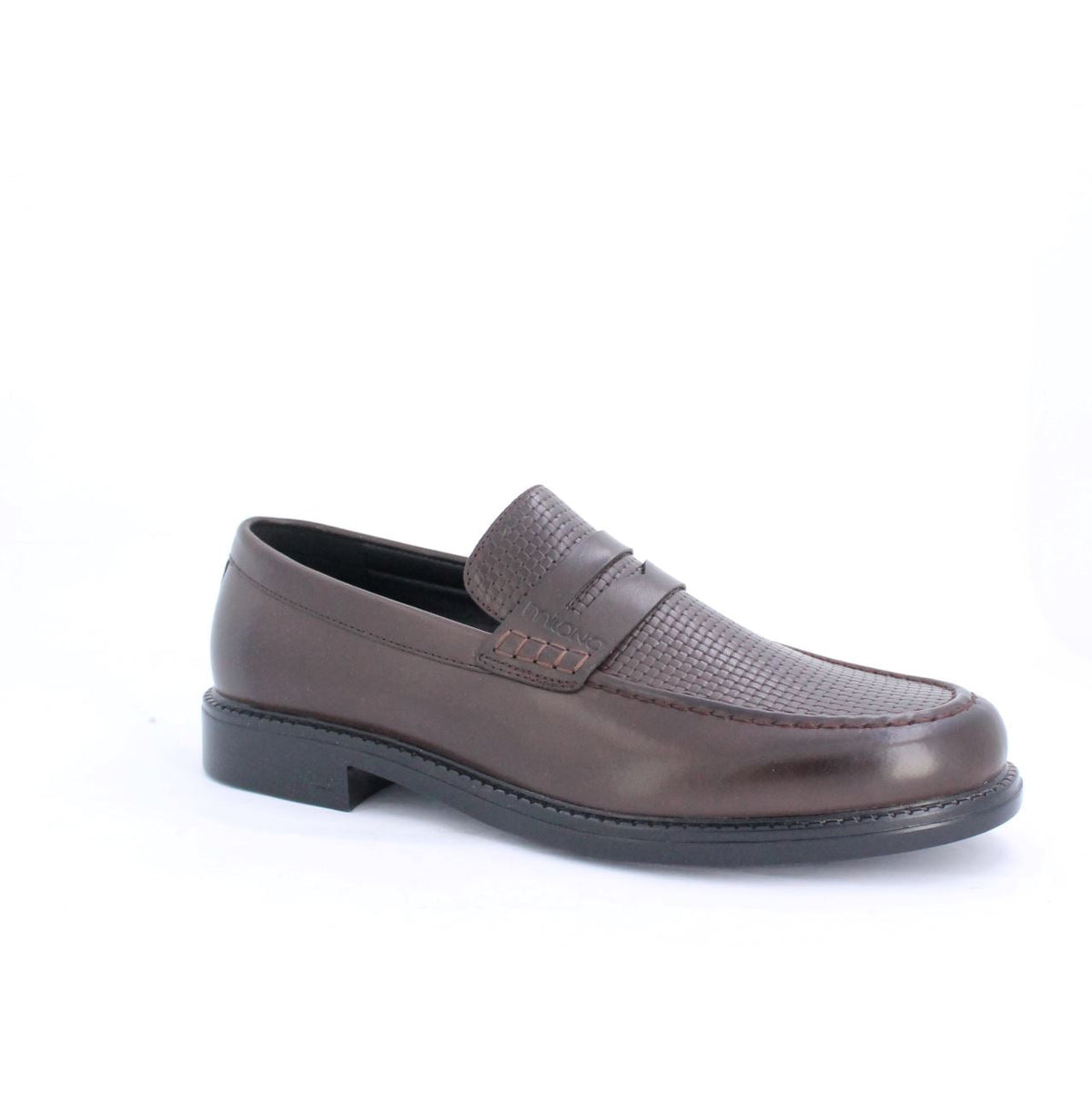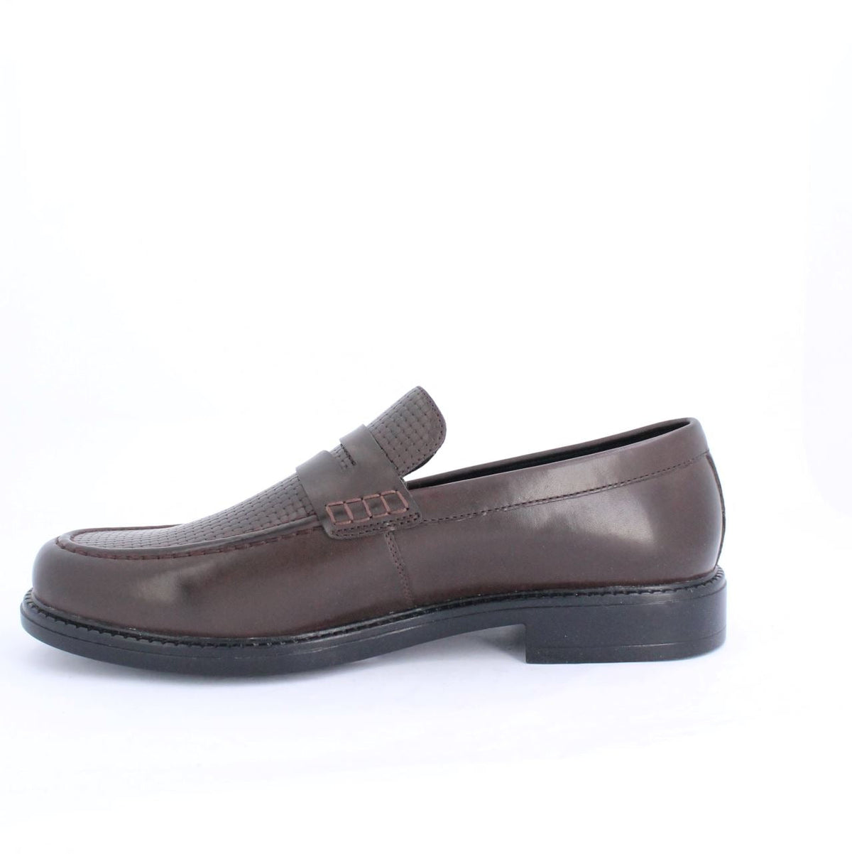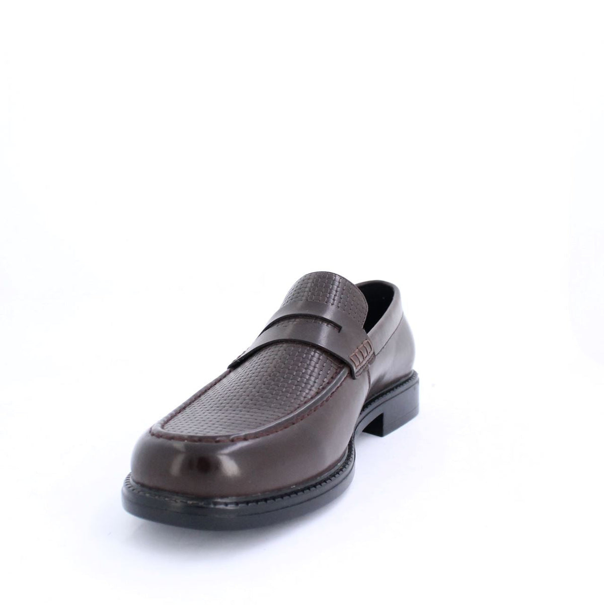 Contemporary design meets bold functionality in these penny saddle Loafers. Set on a modern chunky outsole with distinctive lugged detailing, these loafers bring an edge to a classic silhouette. The leather like upper, finished with an embossed weave pattern, adds depth and texture, while the signature saddle strap offers a refined yet modern accent. Perfect for those who embrace the present, these loafers balance sleek craftsmanship with a striking, forward-thinking aesthetic.