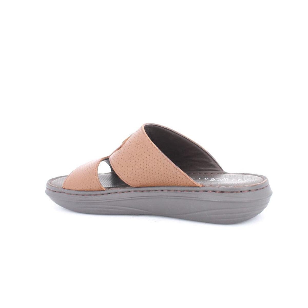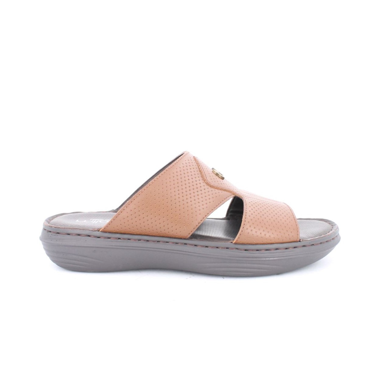 صندل جلد عربي تقليدي من الجلد مفتوح من الخلف مع حواف معدنية من ميلانو.الخامة - جلد