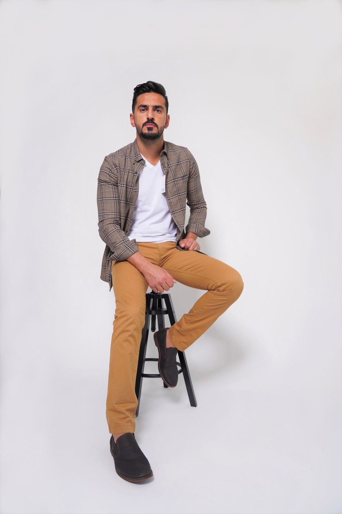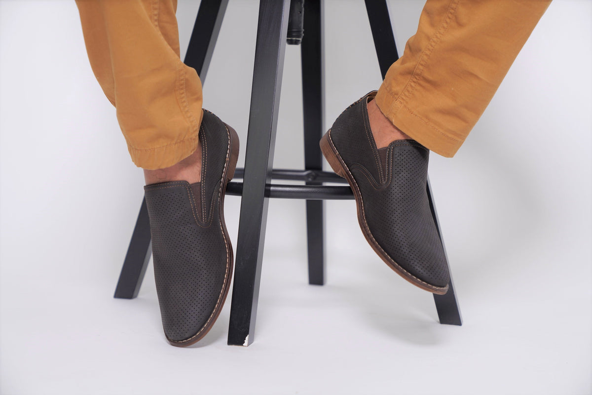 ارتديه بمرونة على حذاء كاجوال بجزء علوي مثقوب.المواد - جلد صناعي