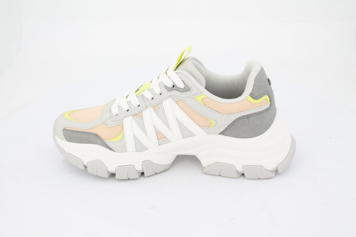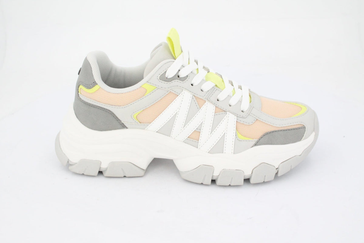 Bold style meets everyday comfort in the Jayd Chunky Sneaker. Featuring a layered mesh and faux leather upper with neon yellow accents, this shoe is built for impact. The thick, sculpted sole offers all-day support, while the zigzag detailing adds a modern edge. Perfect for streetwear vibes or casual fits. Chunky cushioned sole