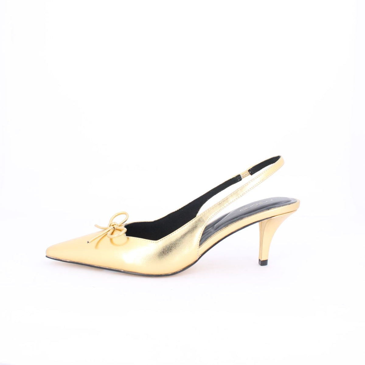 Shine with every step in these elegant AMBER heel Bow-Detailing slingback. Crafted in a radiant gold finished, these slingback pumps feature a refined pointed toe and a delicate bow detail on the vamp, adding a touch of feminine charm. The slender heel and gold-tone sole provides a sophisticated lift, making them perfect for adding a glamorous touch to any ensemble, from special occasions to elevating your everyday style. ?ÿ