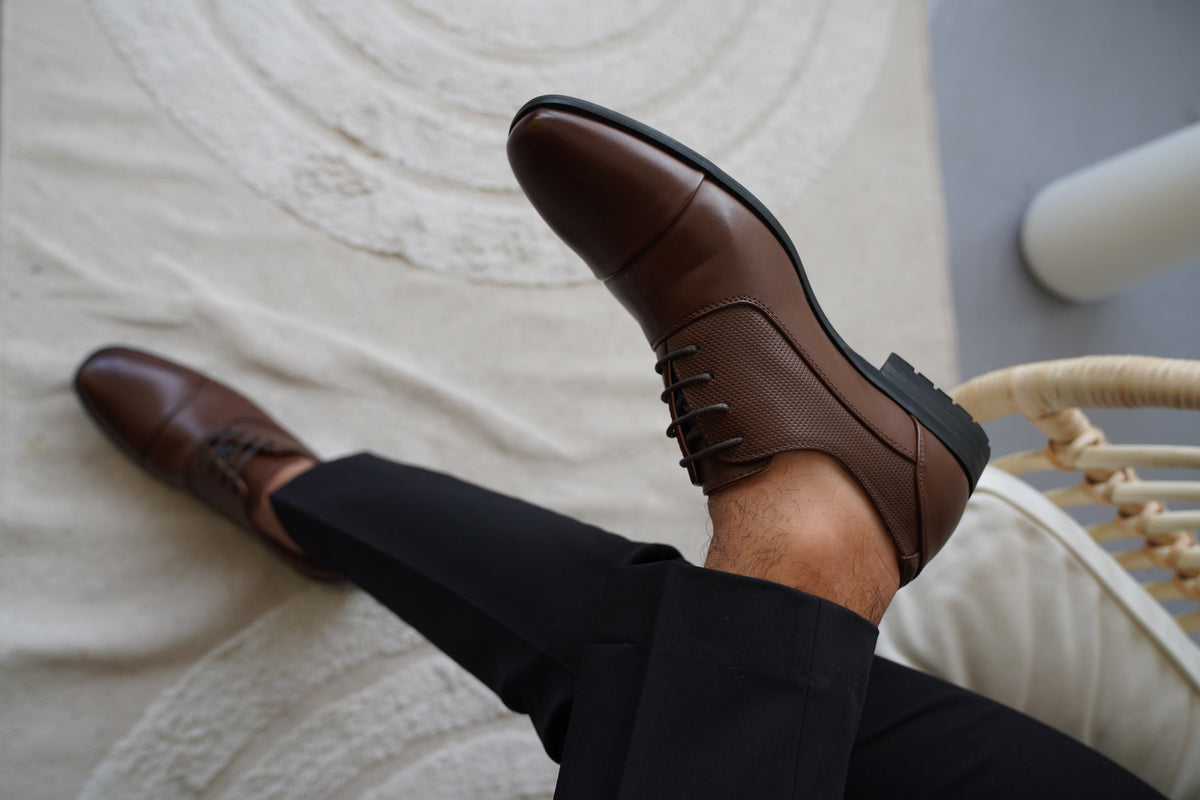 4 حذاء رسمي مع تفصيل علوي مثقب وتقليم معدني ميلانو.