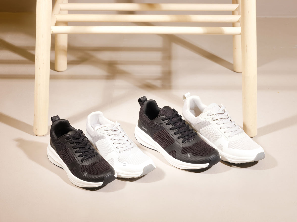 Alden trainer is a unisex style, likely designed for sports activities. It features a lace-up design and a padded collar for added comfort. The upper part of the shoe is made of a breathable mesh material combined with synthetic overlays for added support and durability. The sole is thick and cushioned, providing comfort and ideal for athletic activities. These shoes combines a clean, modern design with functional features suitable for sports or casual wear.