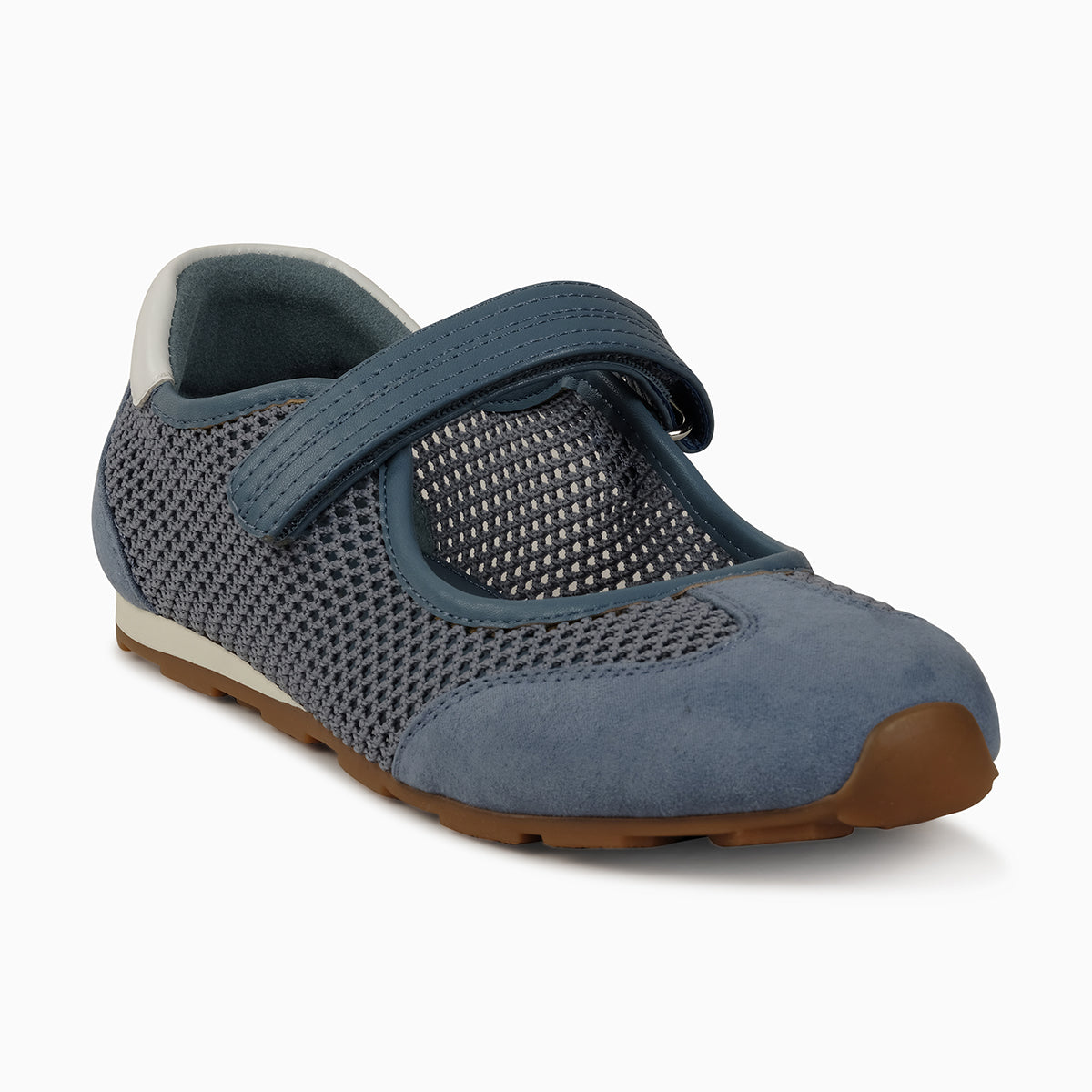 A breathable mesh Mary?Jane designed with a soft pastel?blue upper and an adjustable strap for a secure fit. Finished with a flexible ridged outsole, it delivers lightweight, all?day comfort for casual everyday wear.