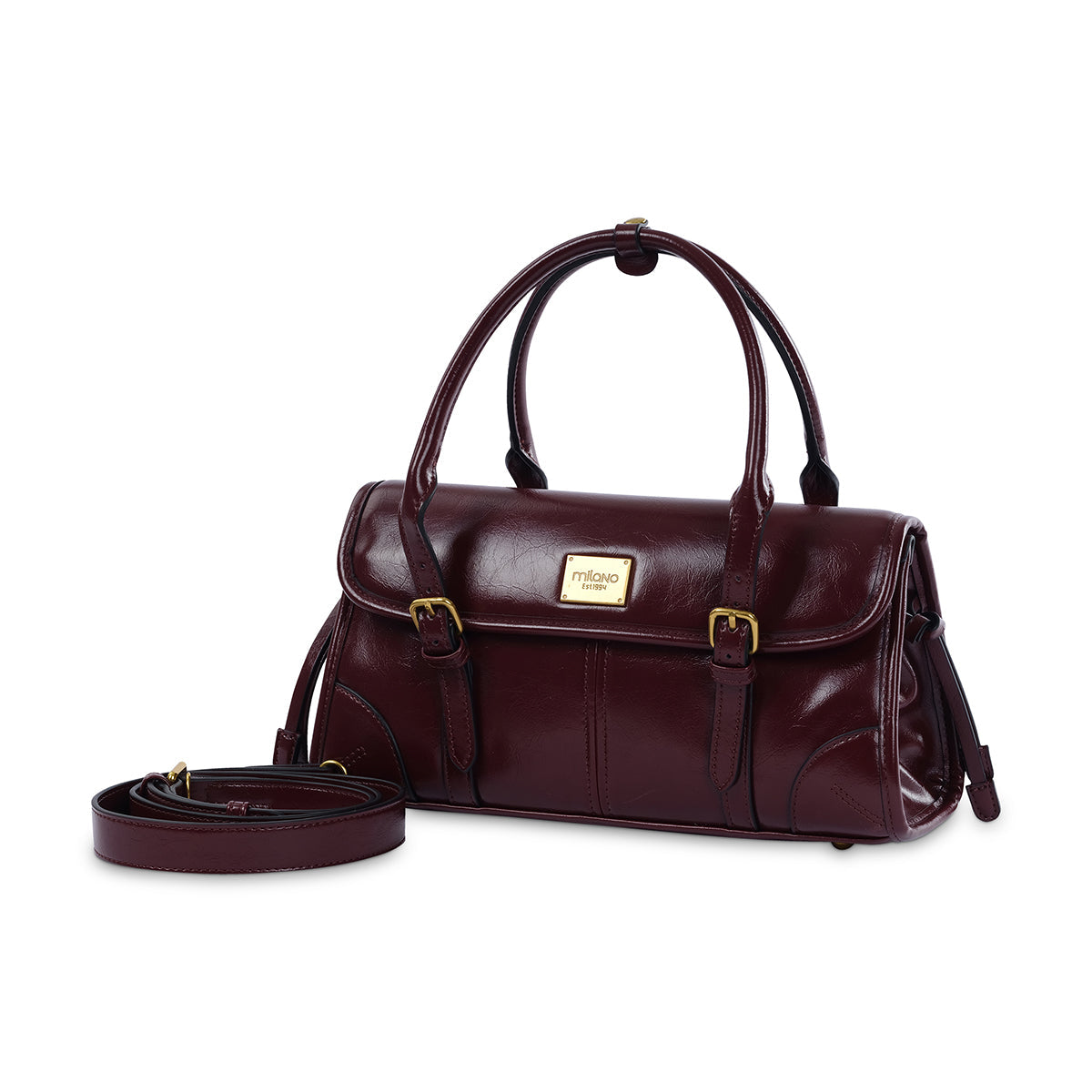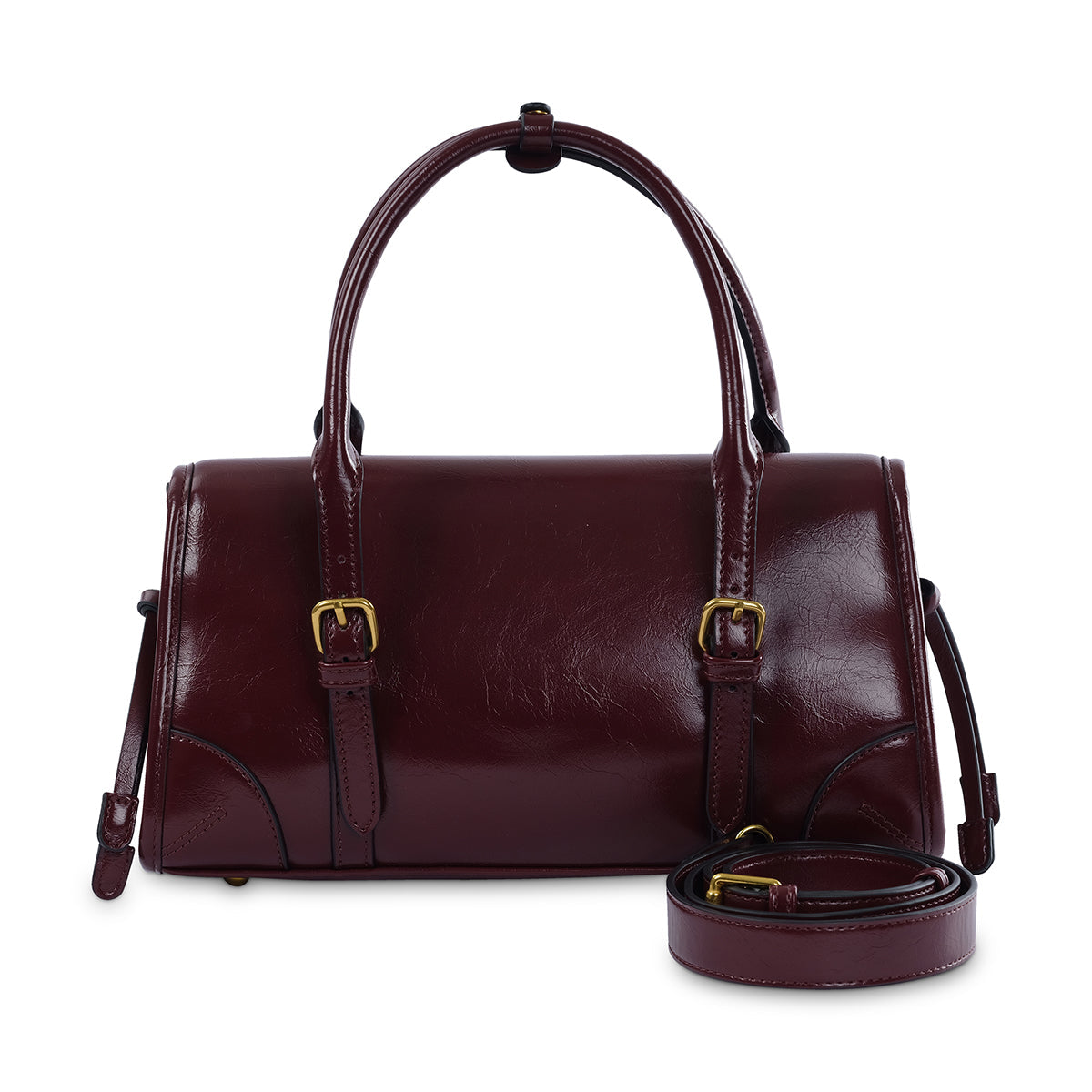 Meet the 'Karima' handbag, a statement piece that blends classic style with modern details. This bag showcases a polished finish and a distinct embossed texture. The elegant front flap is secured by dual buckle straps, and the structured design ensures it holds its shape while carrying all your essentials.