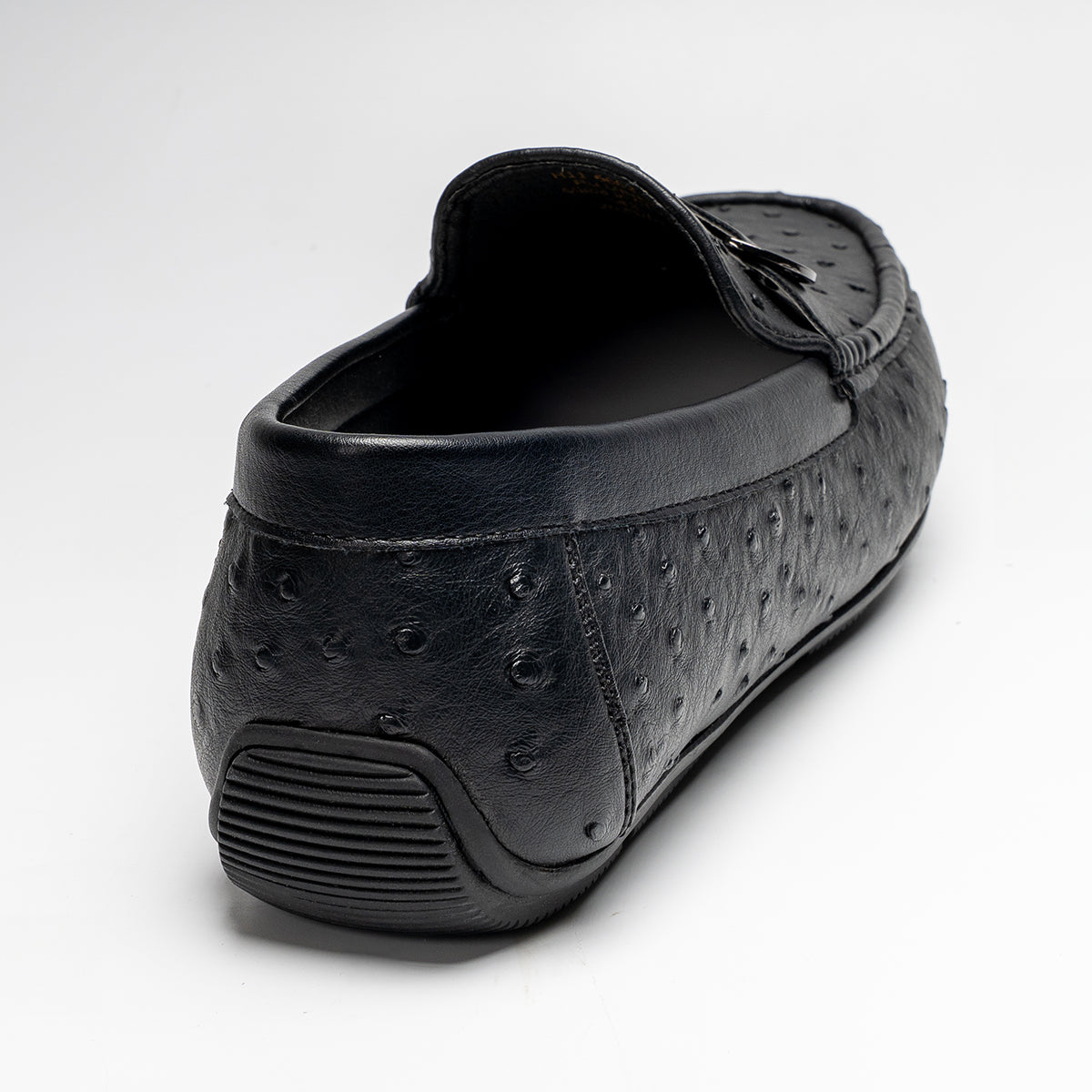 Elevated by design, the Bryson Driving Shoes reinterpret a classic silhouette through a contemporary lens. Crafted from leather like material with an ostrich texture, they feature a simple saddle with a branded tag hardware that nods to tradition while embracing a modern aesthetic. The slip-on design ensures effortless wear for a versatile companion to contemporary living and the added comfort sock ensures for an all day long wear.