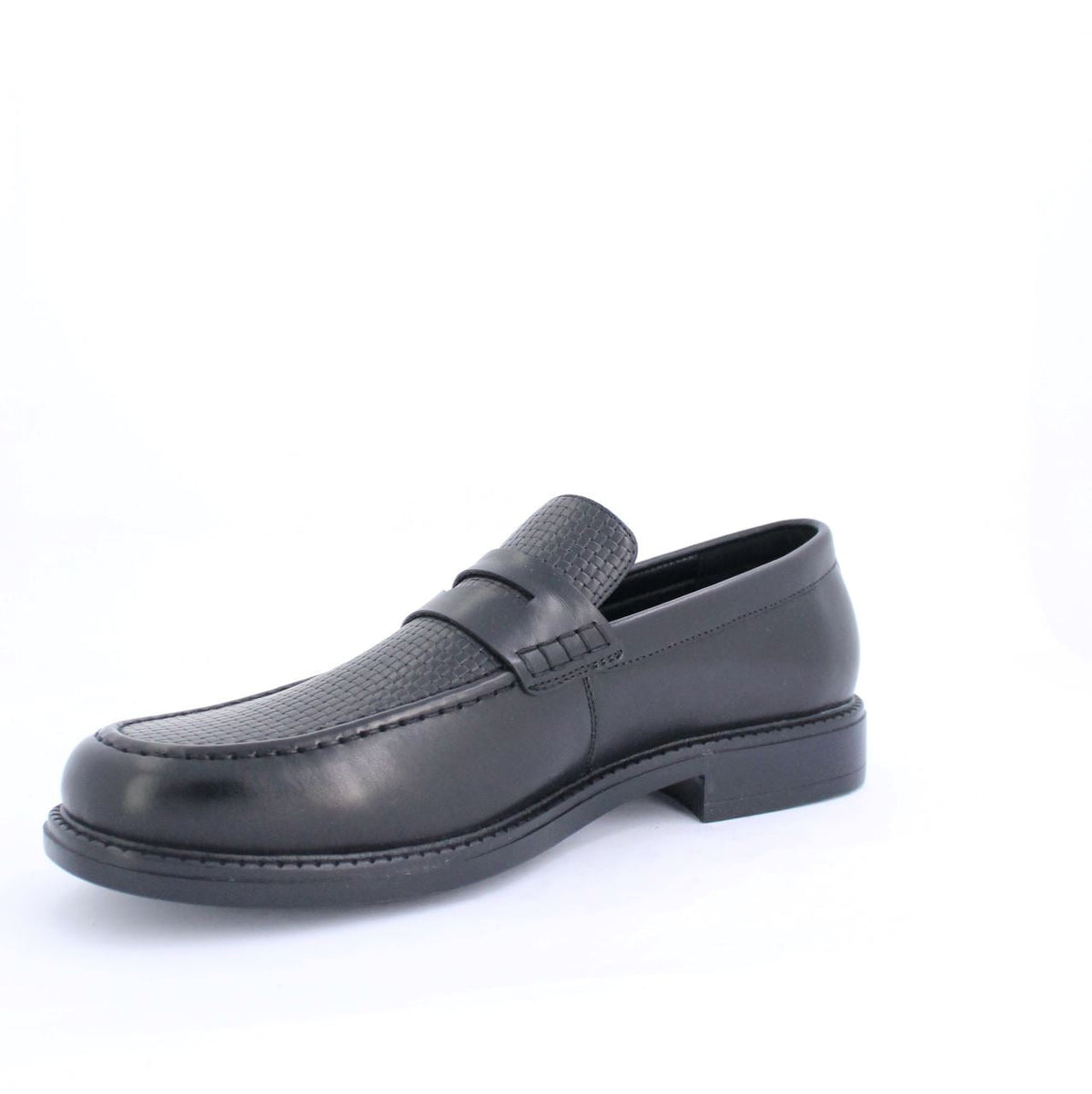 Contemporary design meets bold functionality in these penny saddle Loafers. Set on a modern chunky outsole with distinctive lugged detailing, these loafers bring an edge to a classic silhouette. The leather like upper, finished with an embossed weave pattern, adds depth and texture, while the signature saddle strap offers a refined yet modern accent. Perfect for those who embrace the present, these loafers balance sleek craftsmanship with a striking, forward-thinking aesthetic.