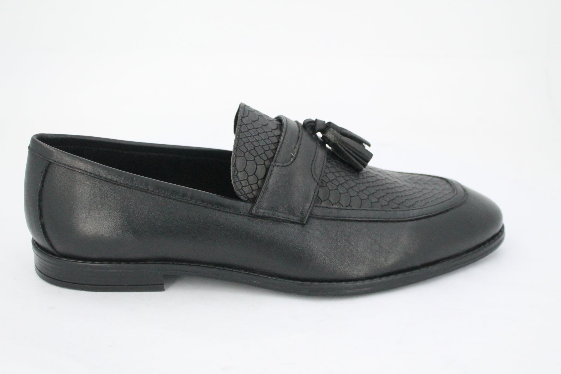 Step into timeless sophistication with these premium men's formal shoes, crafted from high-quality genuine leather. Designed for the modern gentleman, these loafers feature a sleek silhouette complemented by a classic tassel detail on the vamp, adding a touch of refined charm alongside a patterned upper on the vamp area. The polished finish enhances their luxurious appeal, making them perfect for business meetings, formal events, or upscale evenings out. With a cushioned insole and durable outsole, they offer both style and comfort in every step.