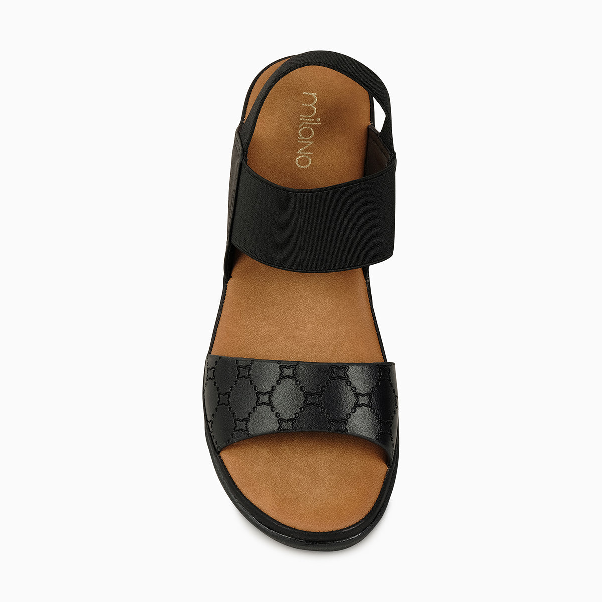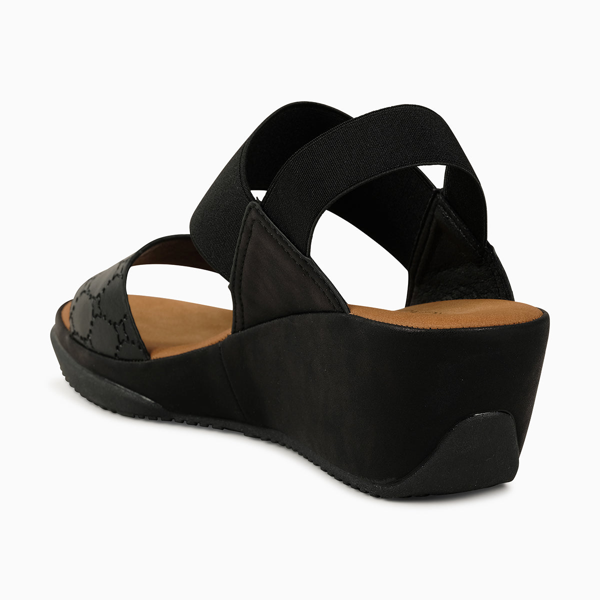 A versatile everyday sandal featuring wide elastic straps for a secure fit and a cushioned footbed for lasting comfort. The lightweight wedge sole adds subtle height while keeping you supported from day to night.