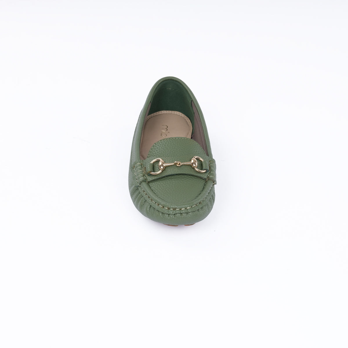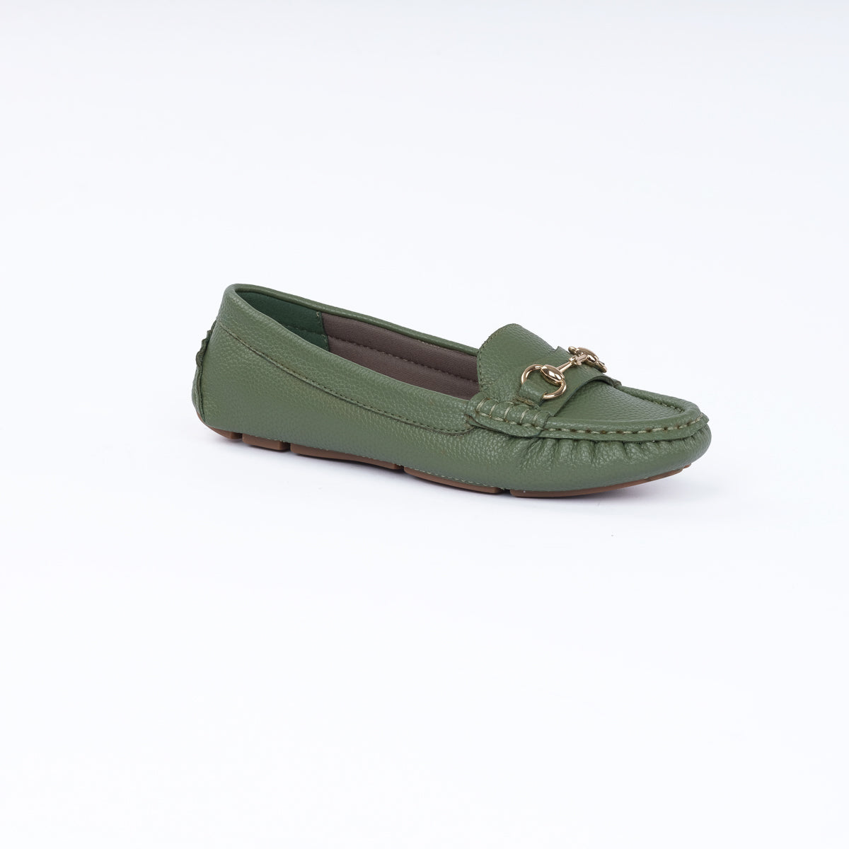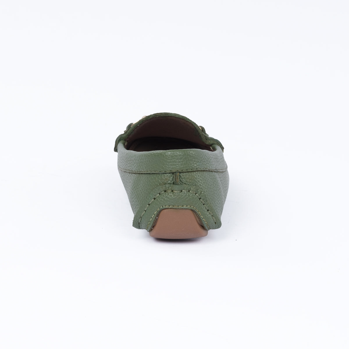 Classic elegance meets comfort,green moccasins with a sleek finish and metallic detail for a timeless, versatile look.