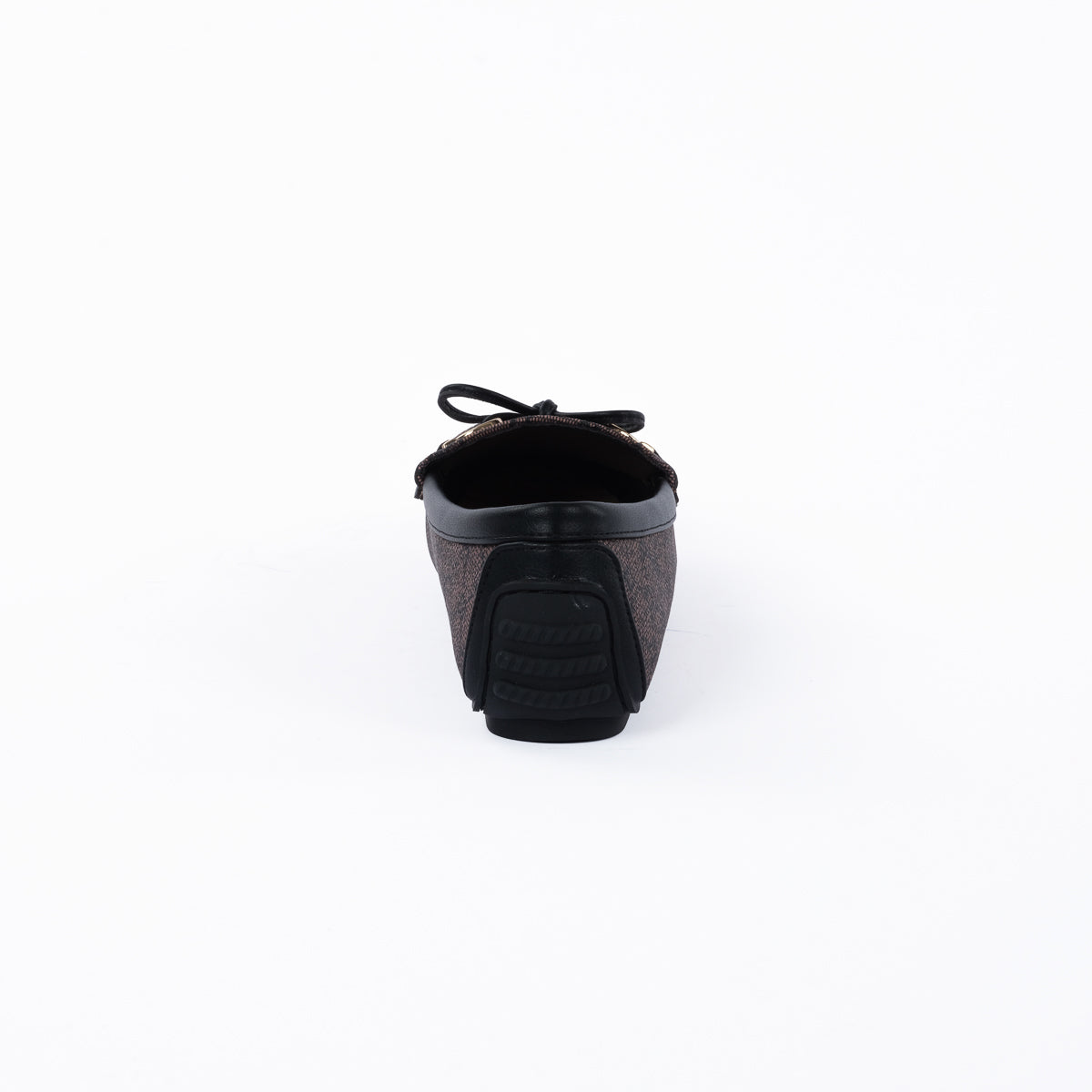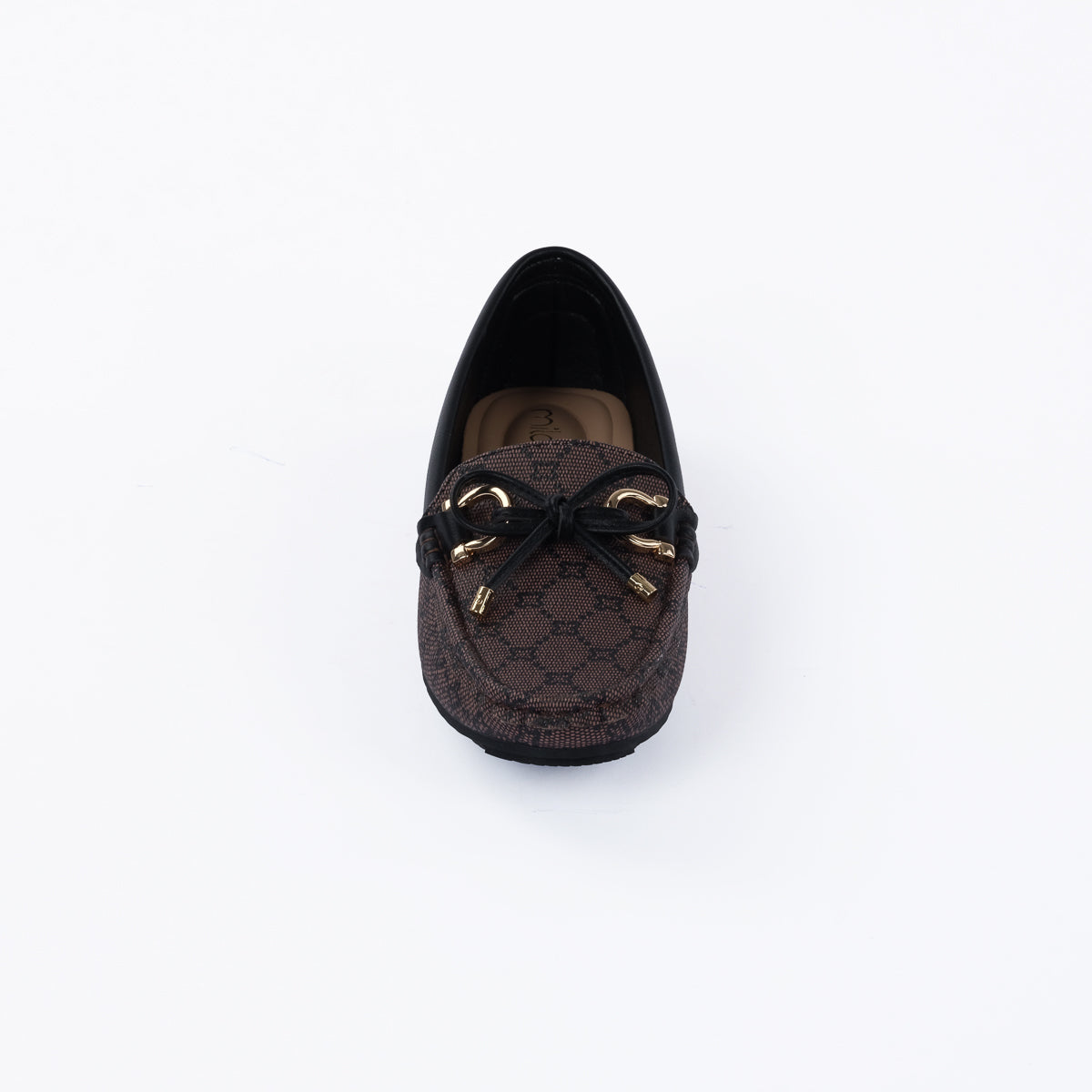 Classic brown monogram moccasins with a sleek slip-on design, accented by a chic bow and metallic details. Perfect for effortless sophistication and all-day comfort.