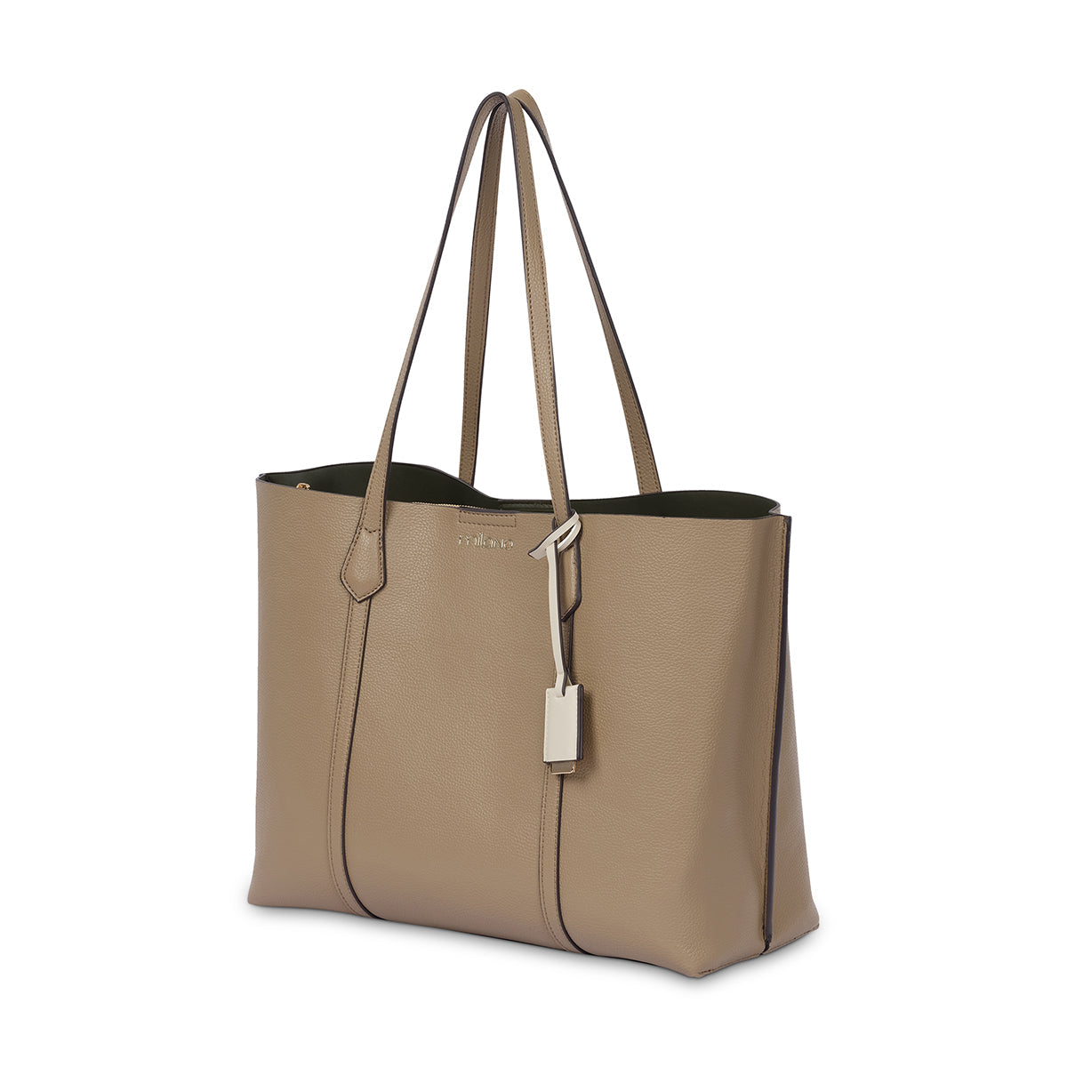 This taupe premium faux leather multiple compartment tote is a perfect workwear bag option with spacious interior, including central zip compartment and phone pockets to suit your needs. The contrast colour inner and detachable Milano luggage tag adds a modern edge