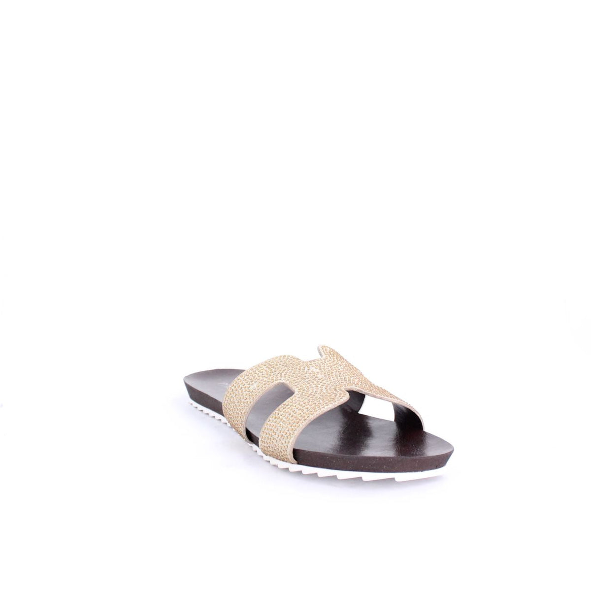 A flat sandal with a minimalist and chic design.The open-toe, slip-on design makes it perfect for casual wear, especially in warm weather. The simple yet elegant construction ensures versatility, pairing well with various outfits, from summer dresses to casual jeans. The overall aesthetic is modern and understated, ideal for a relaxed yet fashionable look.