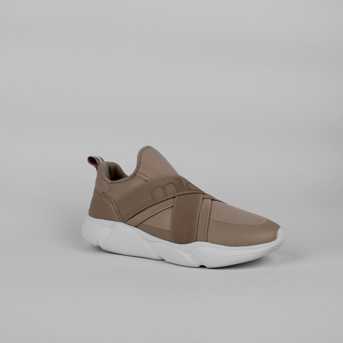 New colorway of the style Dabria, effortlessly stylish and comfortable. These slip-on sneakers feature a sock-like fit and a sleek, multi-strap design with "Milano" statement" across the vamp. The lightweight white sculpted sole provides a modern, athletic look, while the neutral beige tone ensures versatility for everyday wear.