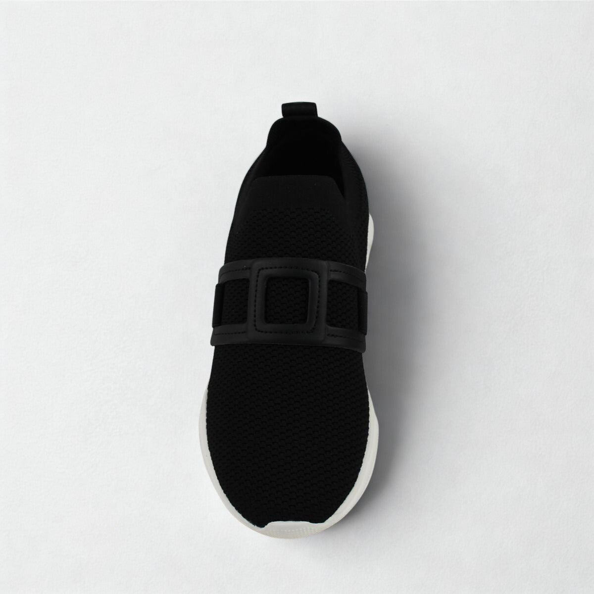 Stylish slip-on sneakers with a modern, minimalist design. The shoes feature a comfortable, sock-like knit upper and a bold, textured white sole. The sculpted sole provides both support and a unique, contemporary look.