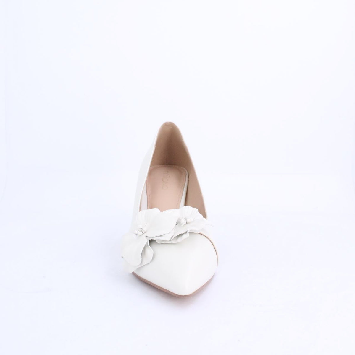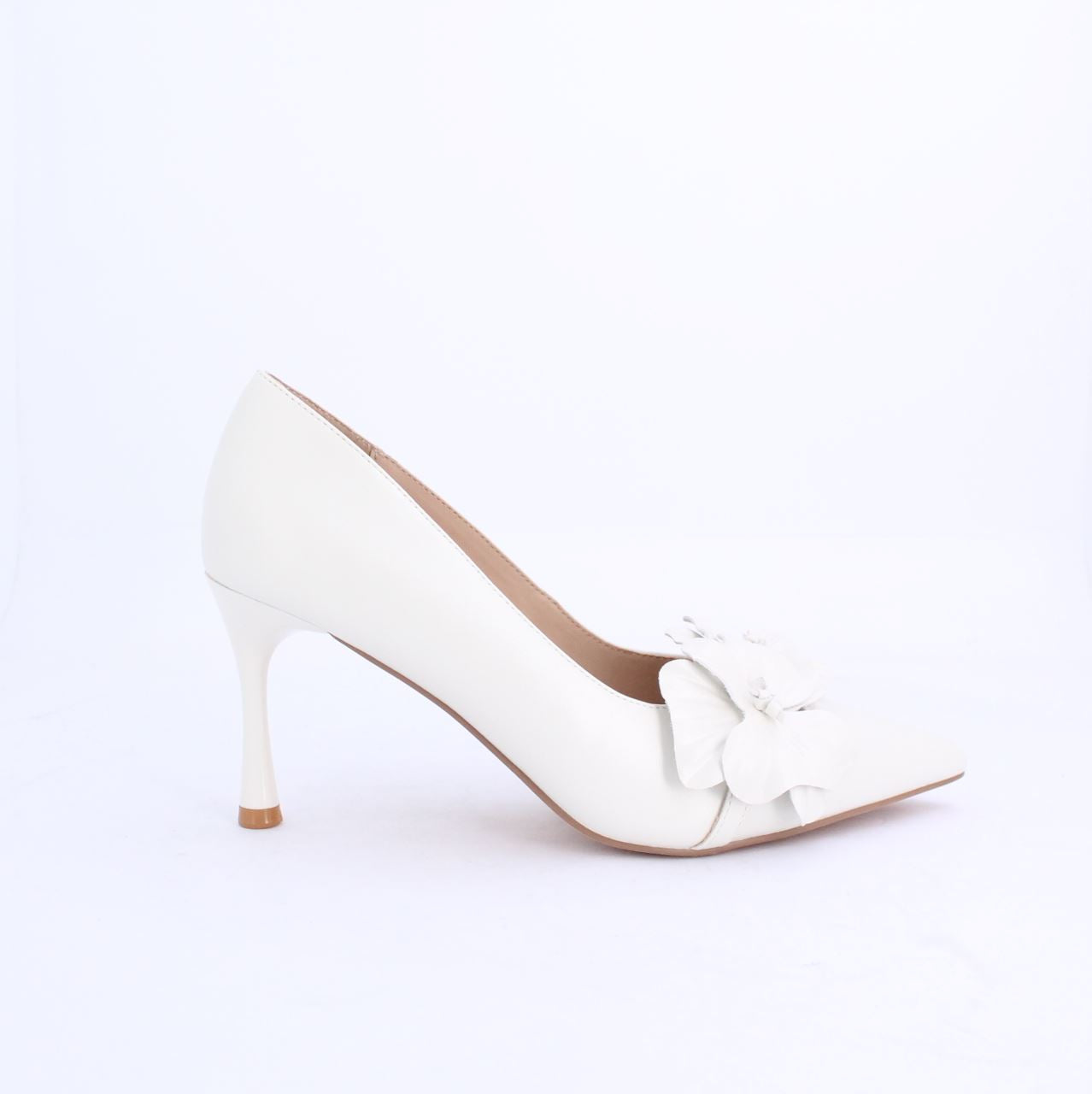 Caryll pump stiletto heel features a sleek pointed toe, a delicate floral embellishment for added elegance, and a cushioned insole for comfort. Its refined design makes it perfect for formal occasions, weddings, or evening events, combining sophistication and style while offering a secure and flattering fit.