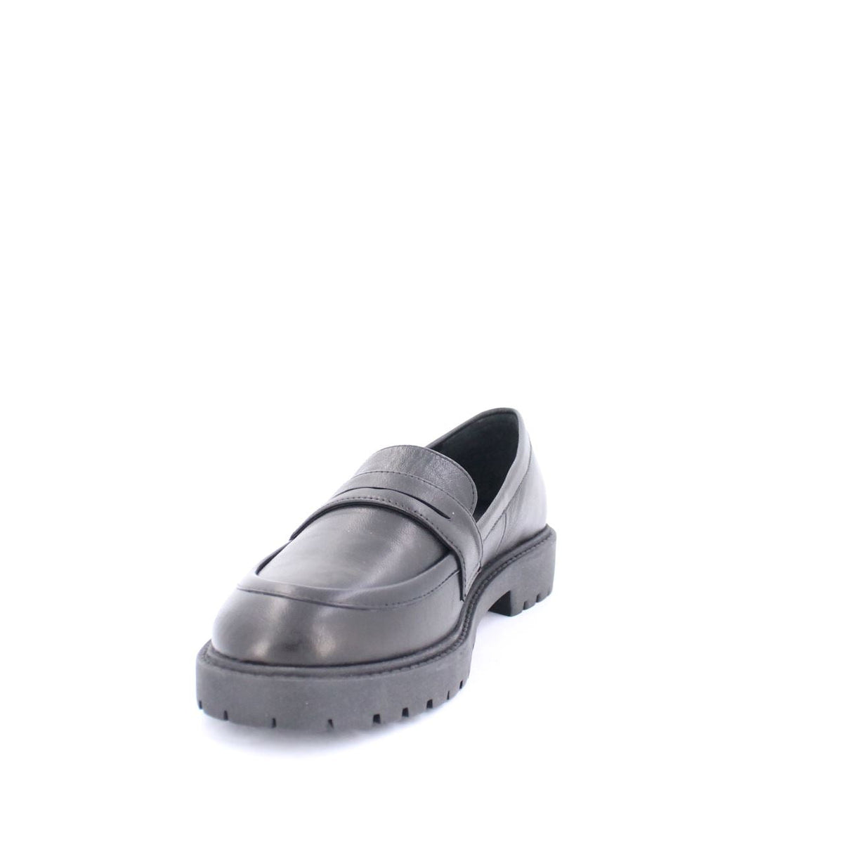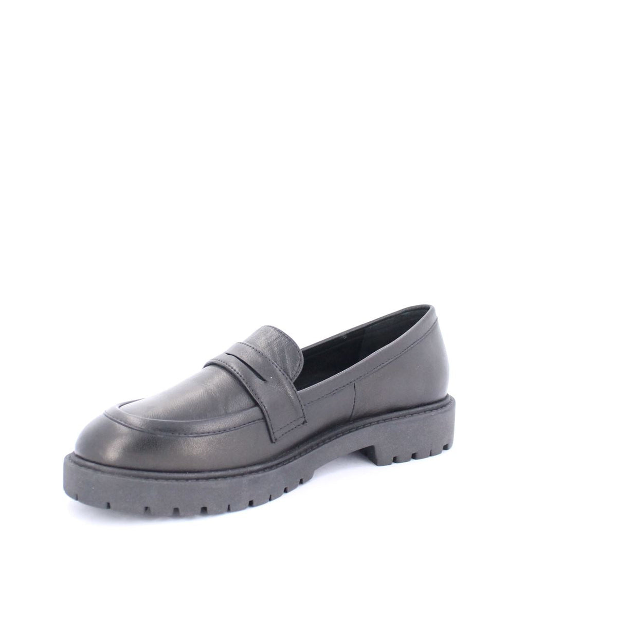 A loafer with a modern and rugged touch. It has a classic penny loafer design with a strap across the vamp and a smooth, structured upper made of leather material. TThese features a lugged sole, which adds a contemporary, chunky aesthetic while ensuring durability and excellent grip. This shoe is a stylish option for casual or smart-casual occasions, combining traditional design elements with a bold and functional sole.