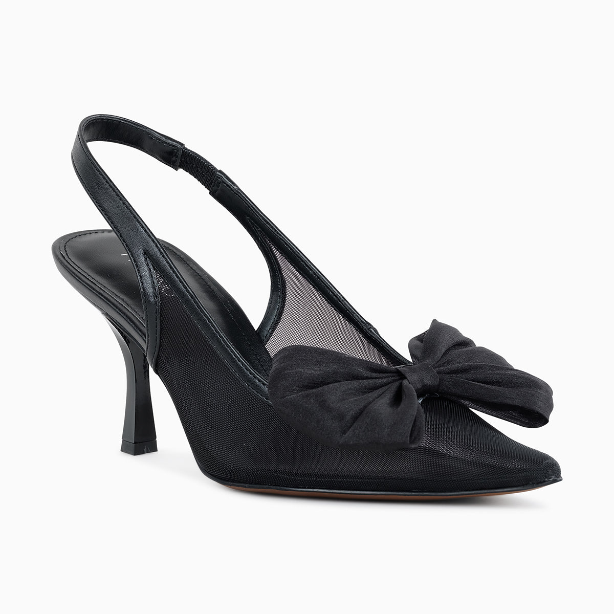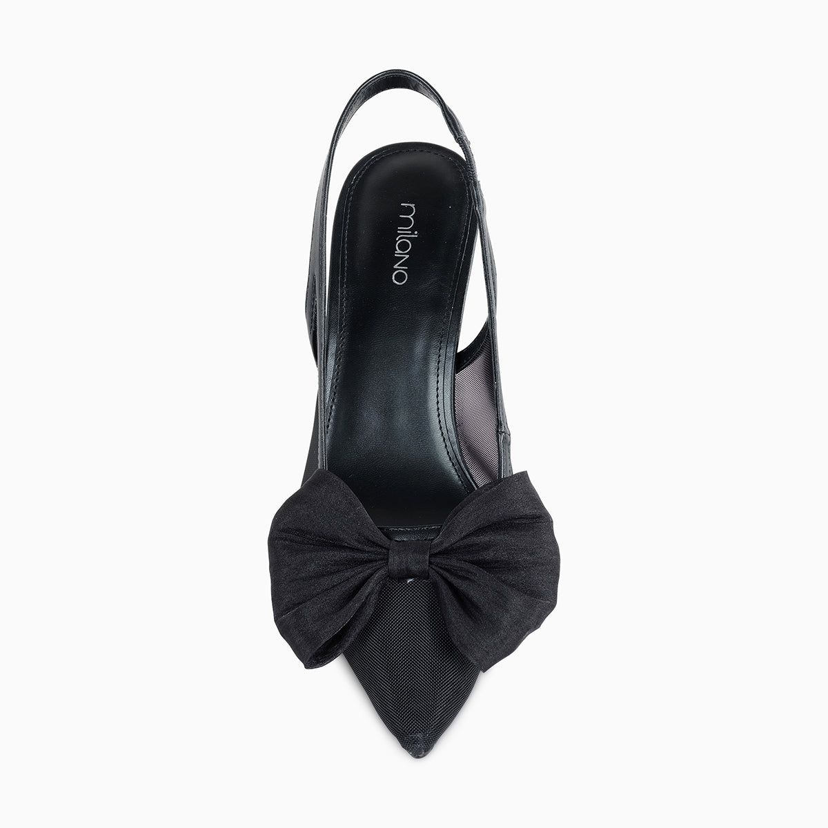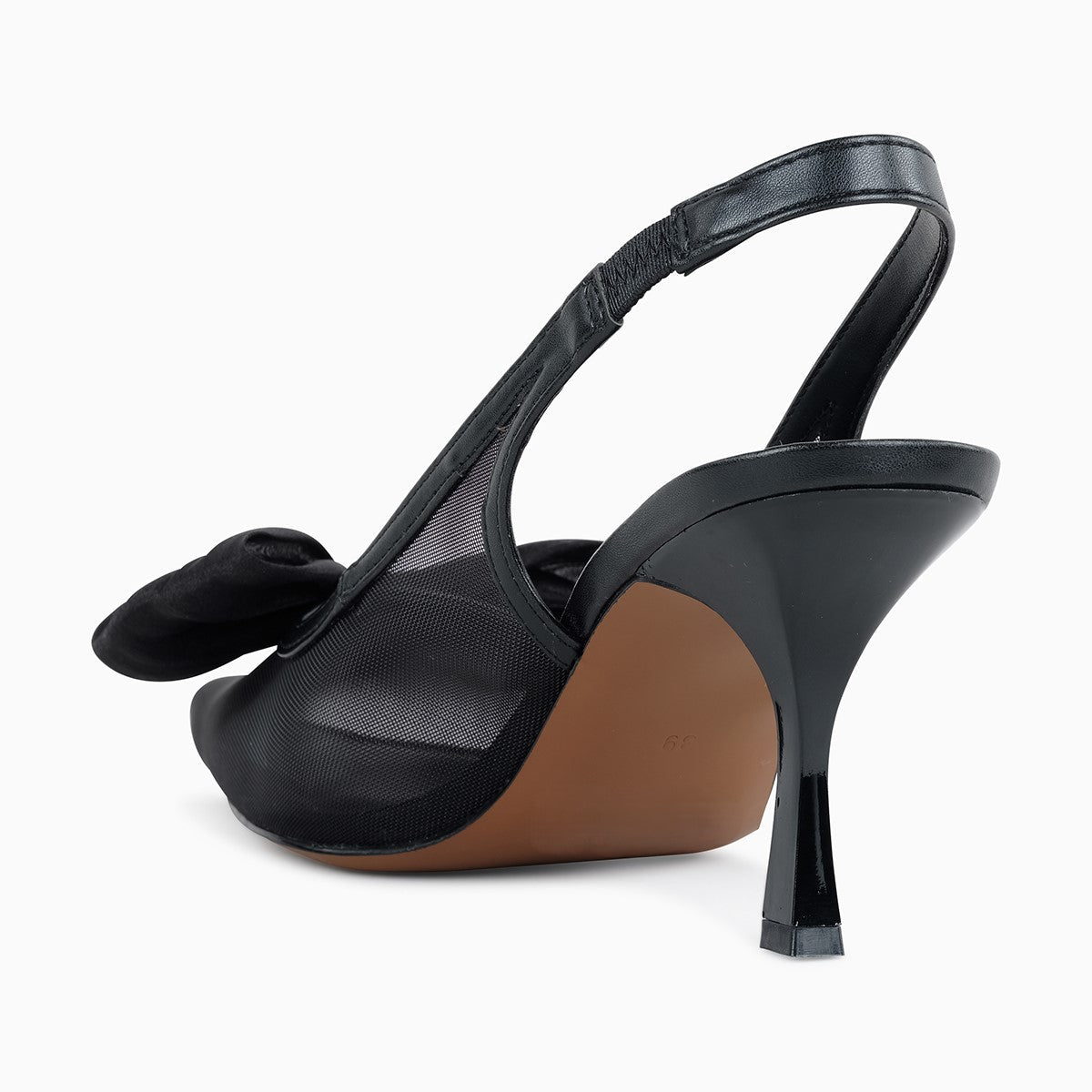 Sophisticated slingback heels featuring a pointed toe and elegant bow accent. Designed with a sleek stiletto heel for a refined look, perfect for evening wear or special occasions
